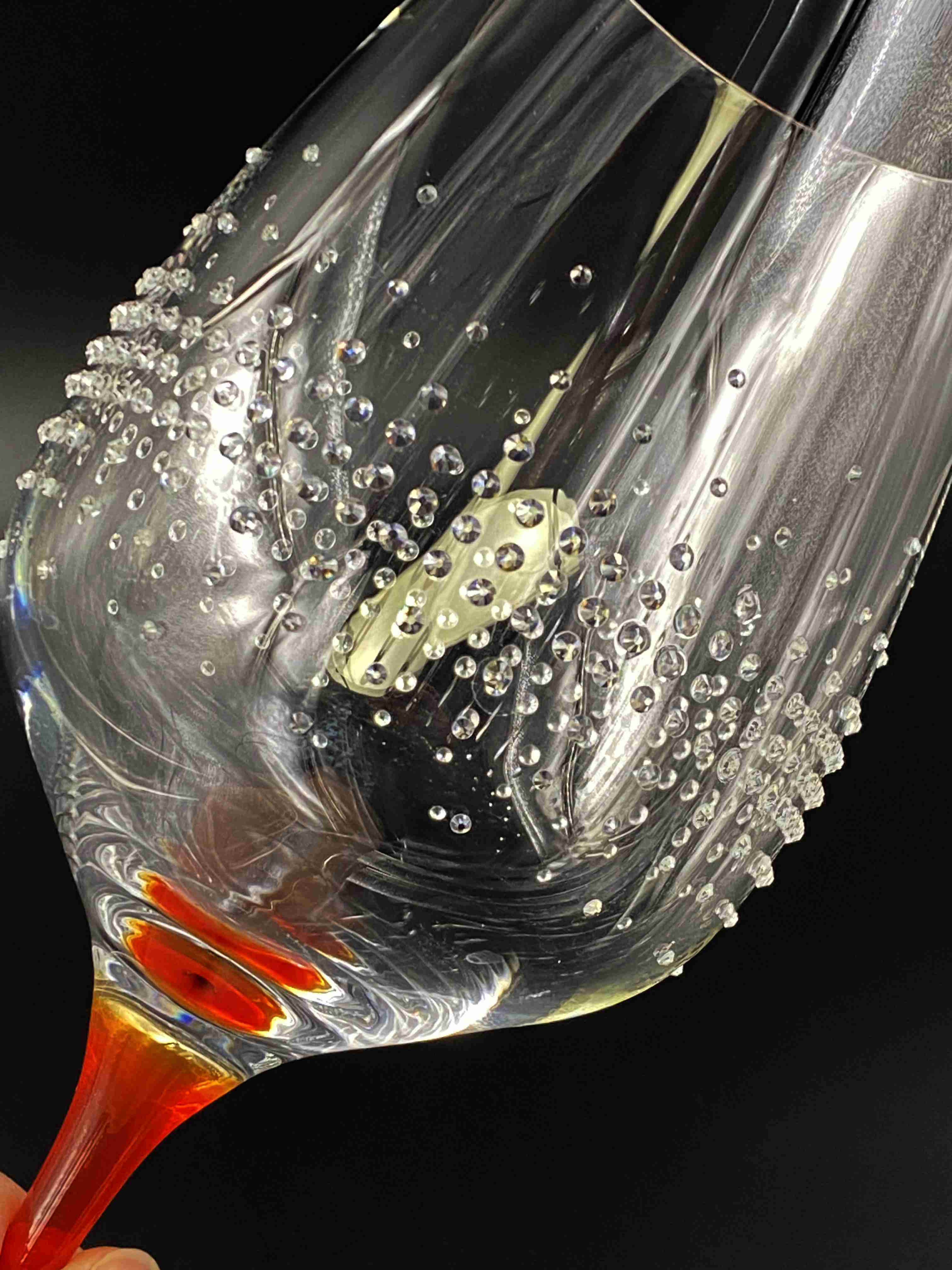 Der farbige Stiel und die Luxus-Kristalle aus Österreich machen Lust auf kühle Drinks.
