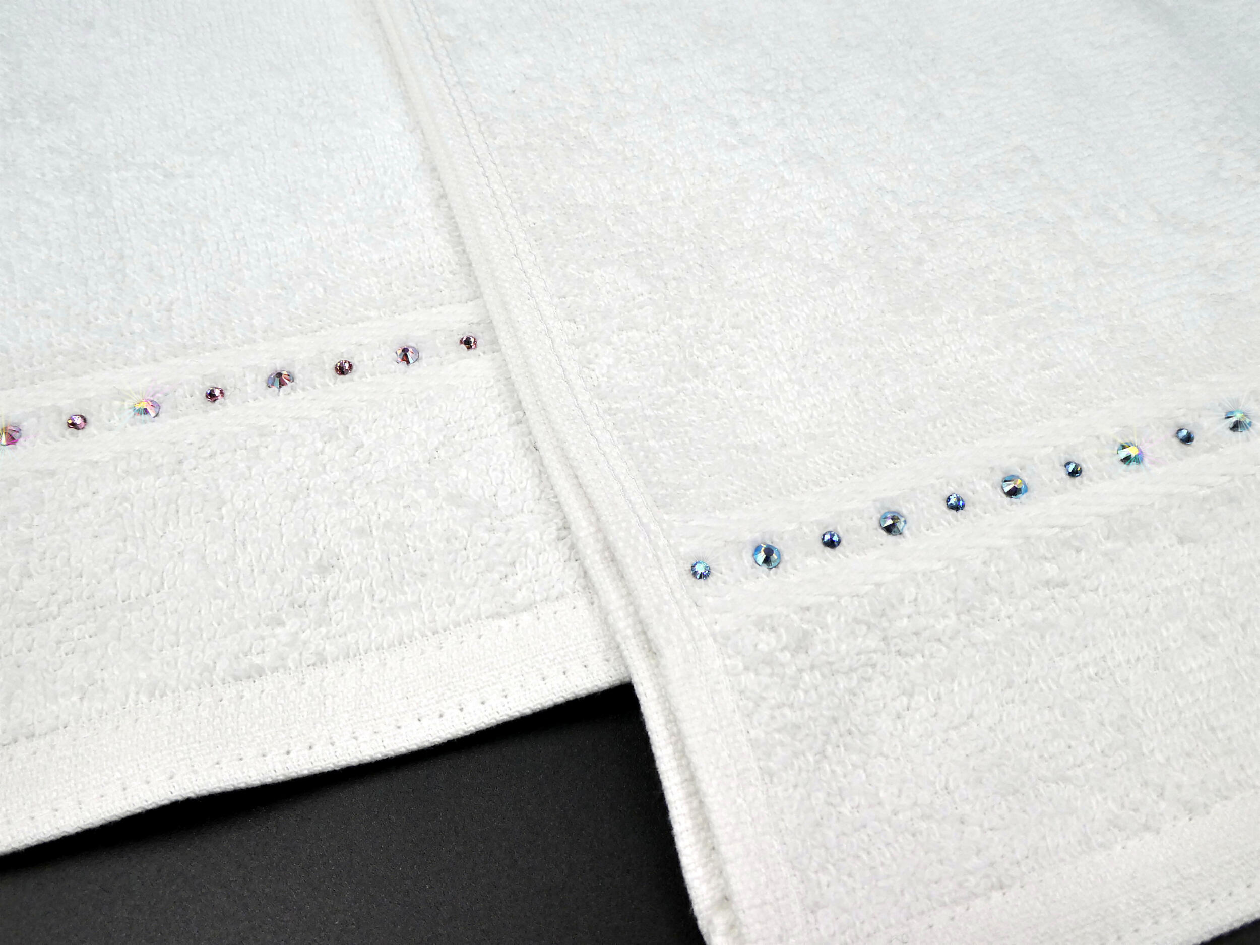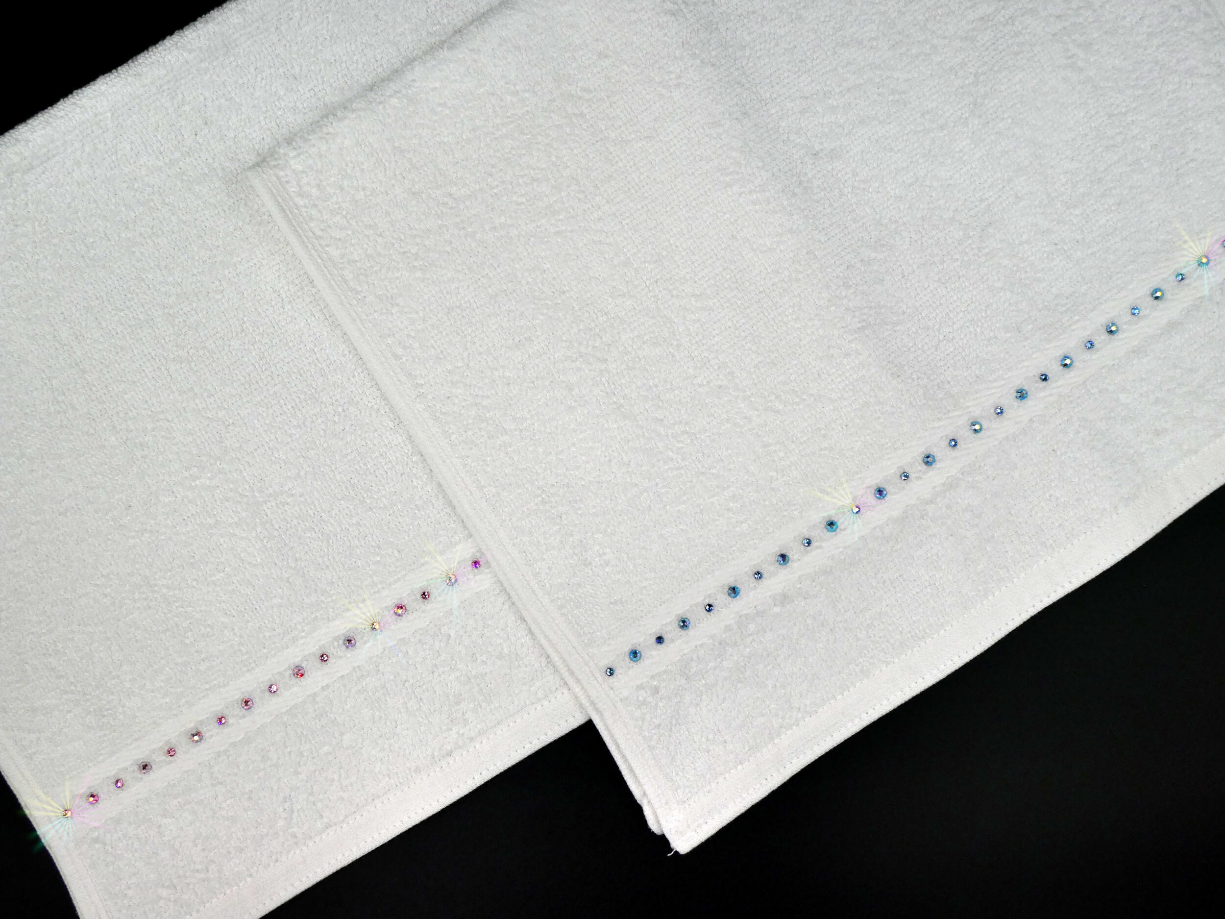 Frottee Handtücher veredelt mit Kristallen aus Österreich – “blau + rosa Duett”