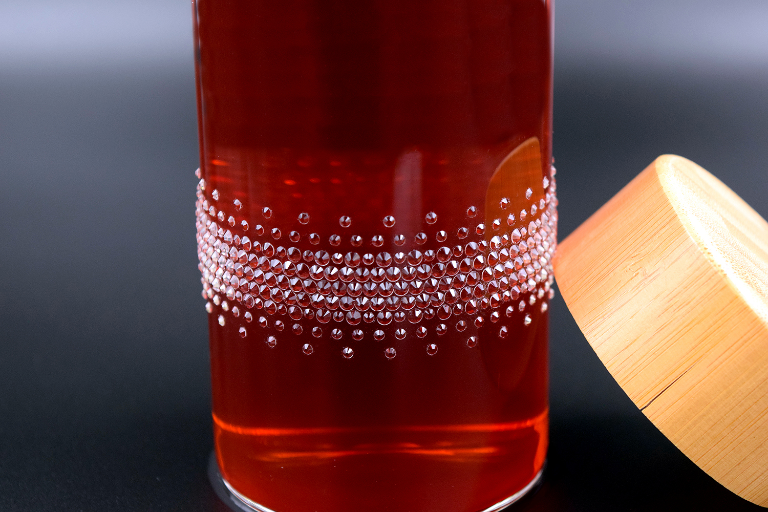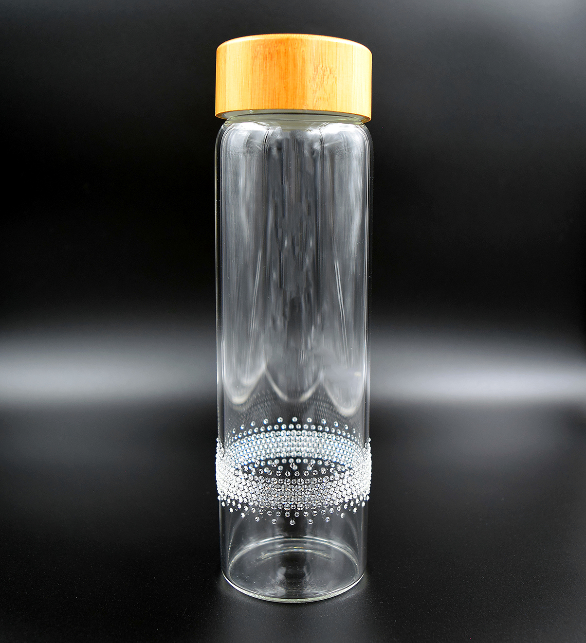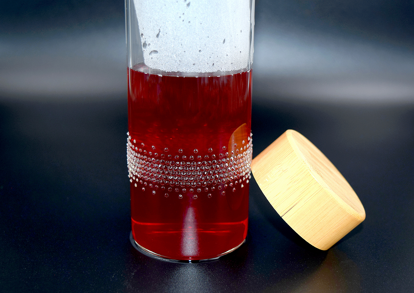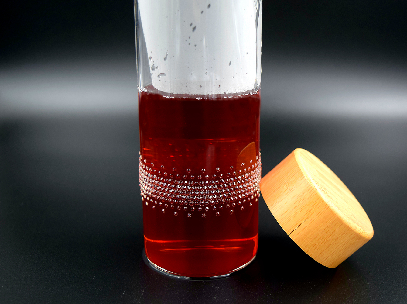 Der hochwertige Bambusdeckel verleiht der Flasche ein modernes Design.