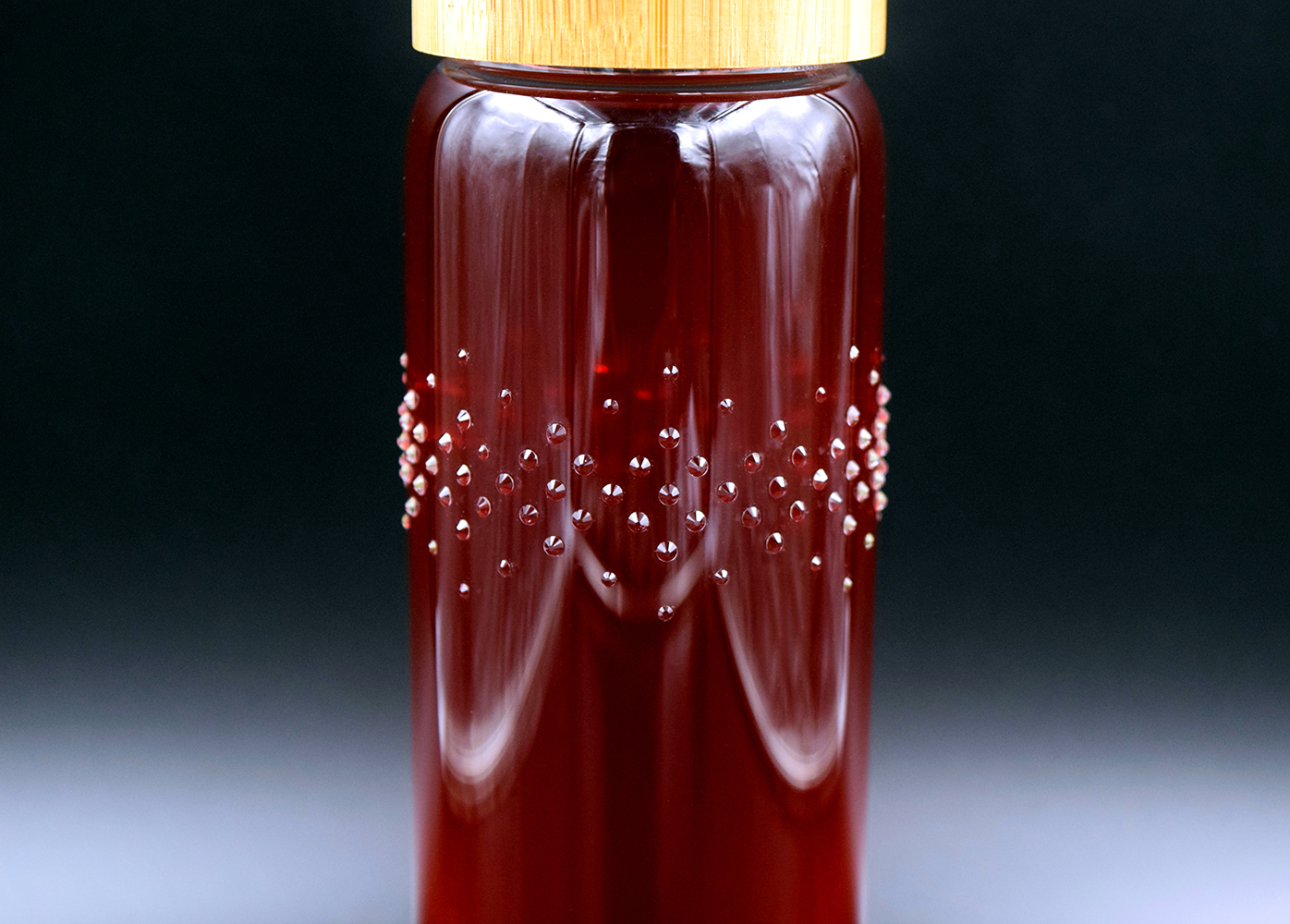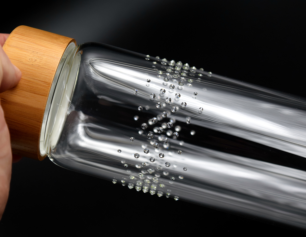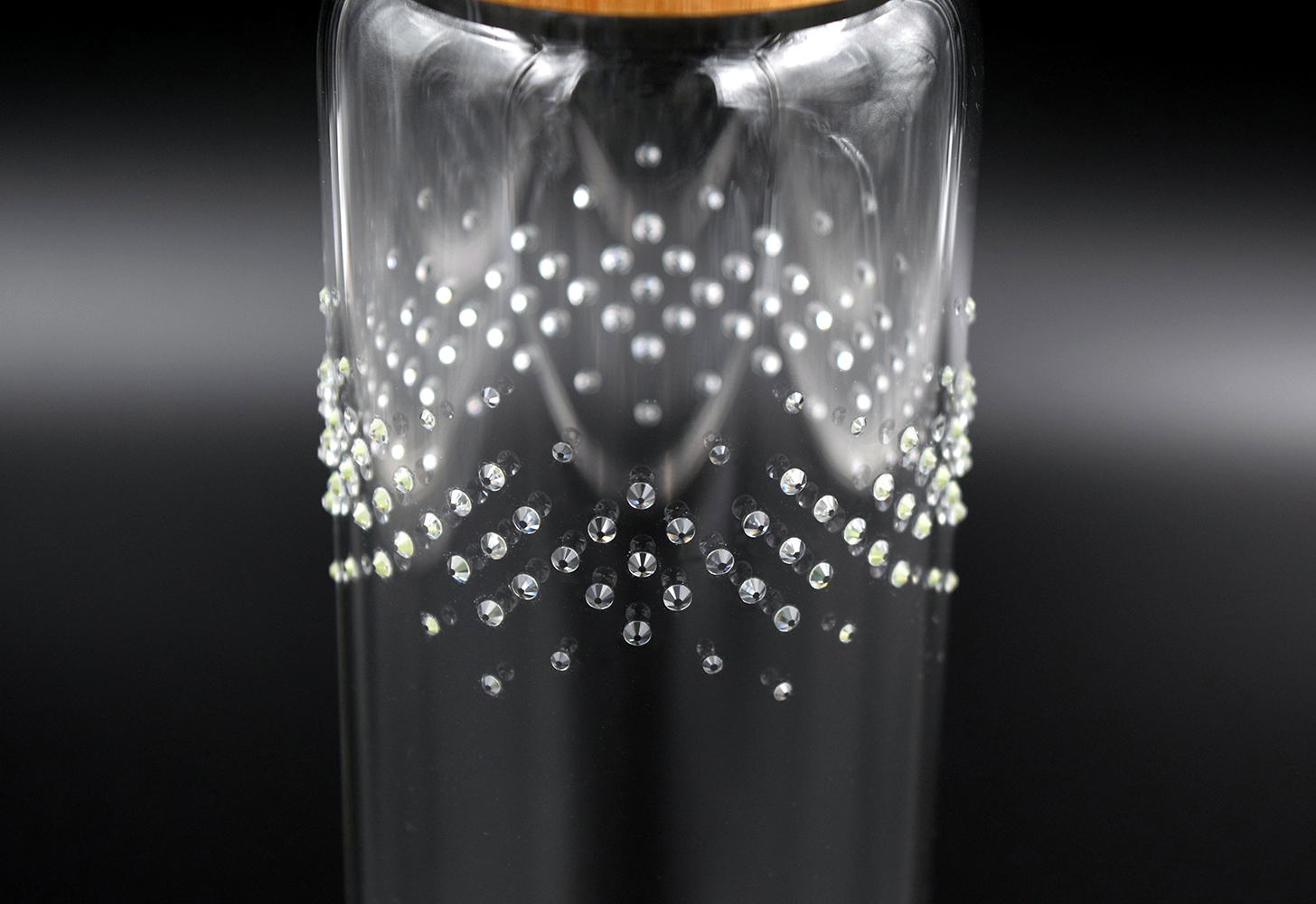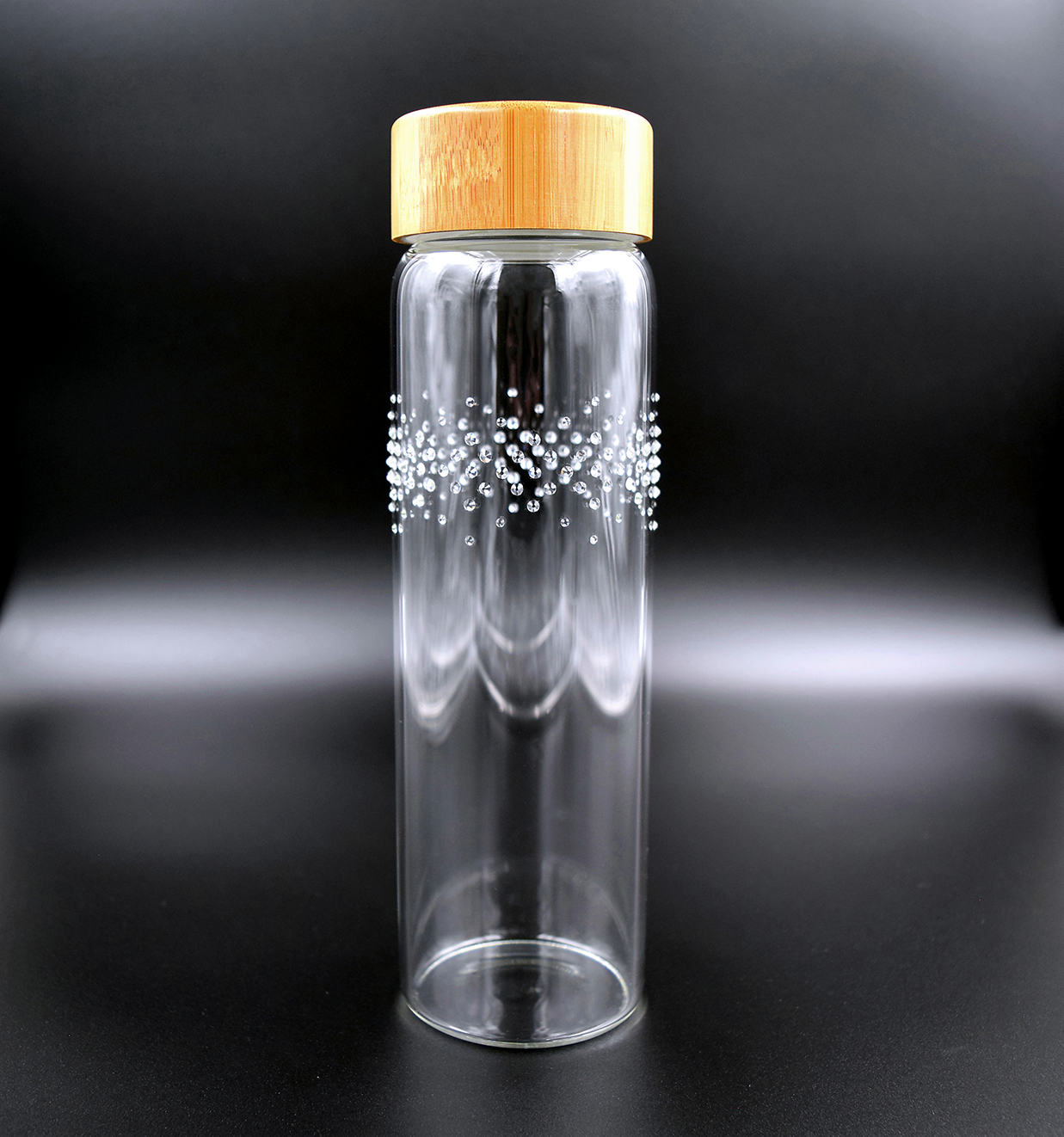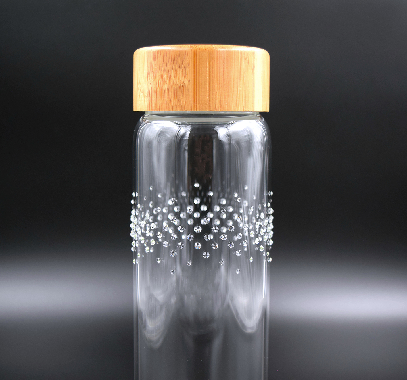 Der hochwertige Bambusdeckel verleiht der Flasche ein modernes Design.