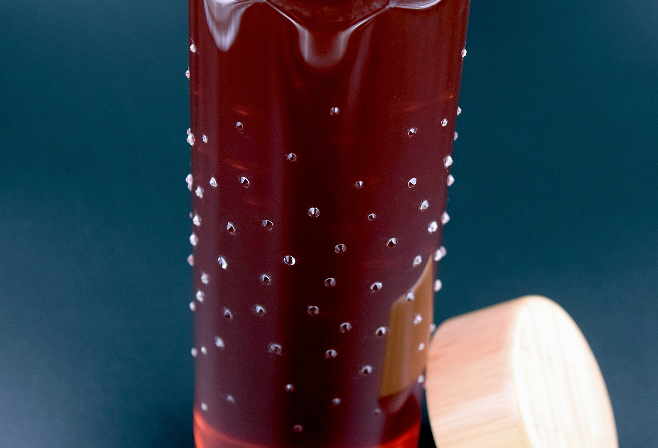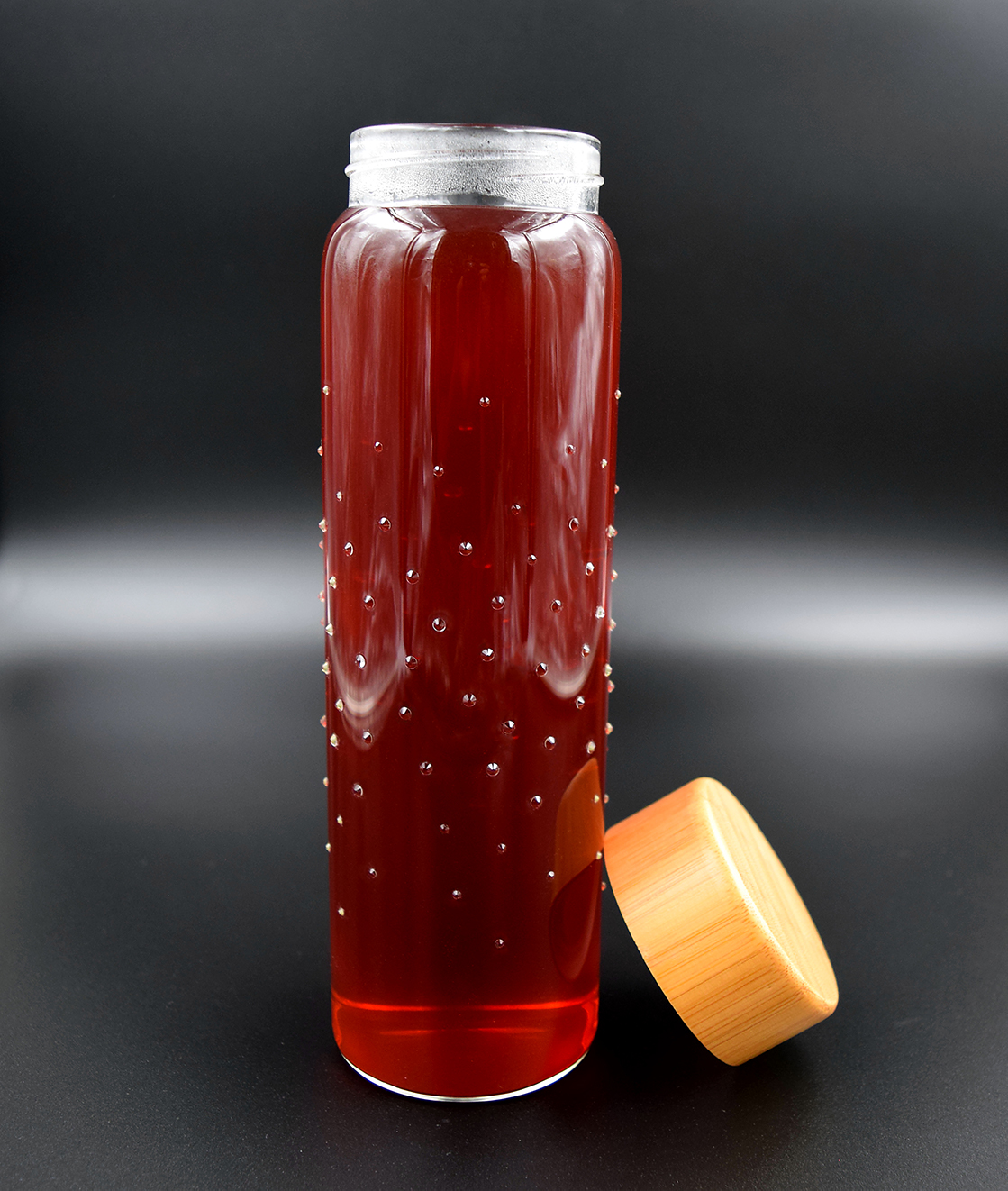 Der hochwertige Bambusdeckel verleiht der Flasche ein modernes Design.