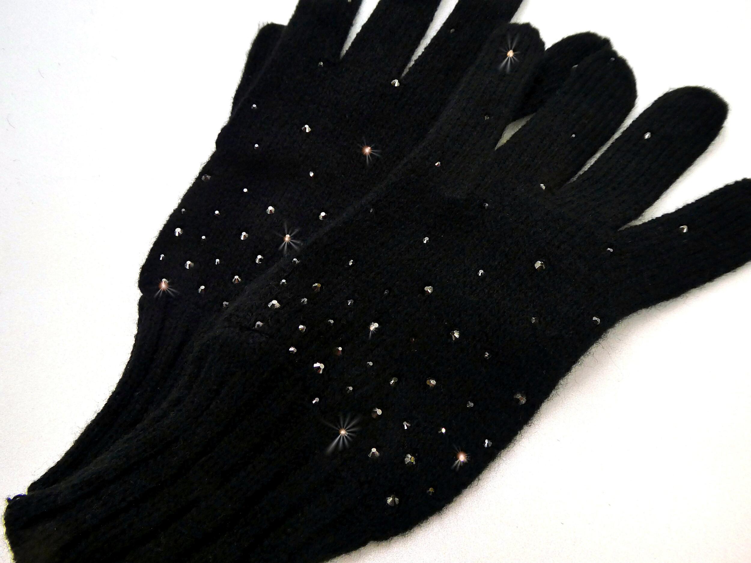Handschuhe + Kappe mit Strass “Sternenhimmel”