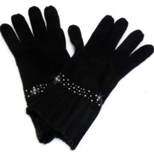 Handschuhe + Kappe mit Strass Streifen