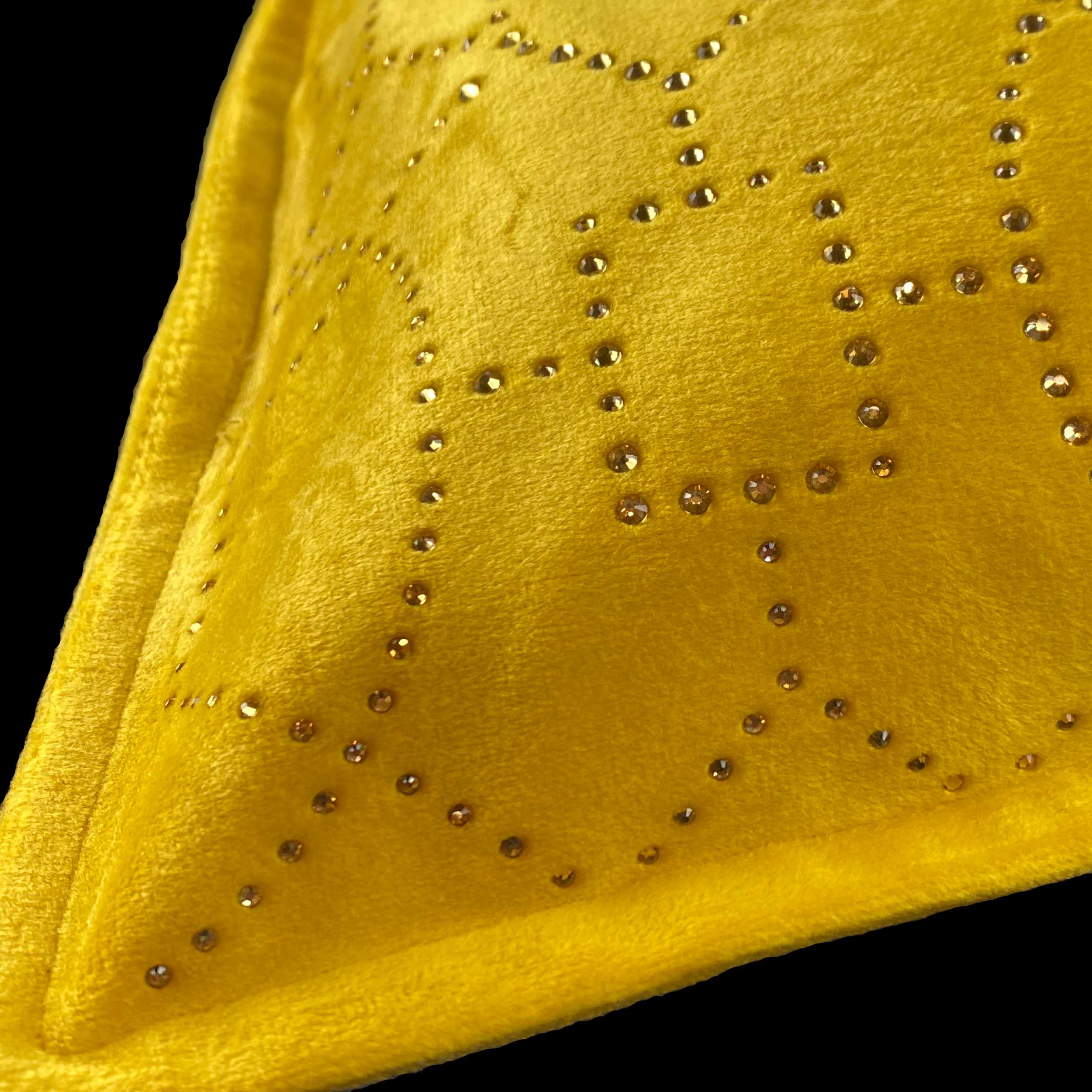 Ein stilvolles Dekokissen, das durch edles Samtgewebe und glitzernde Strasssteine glänzt.