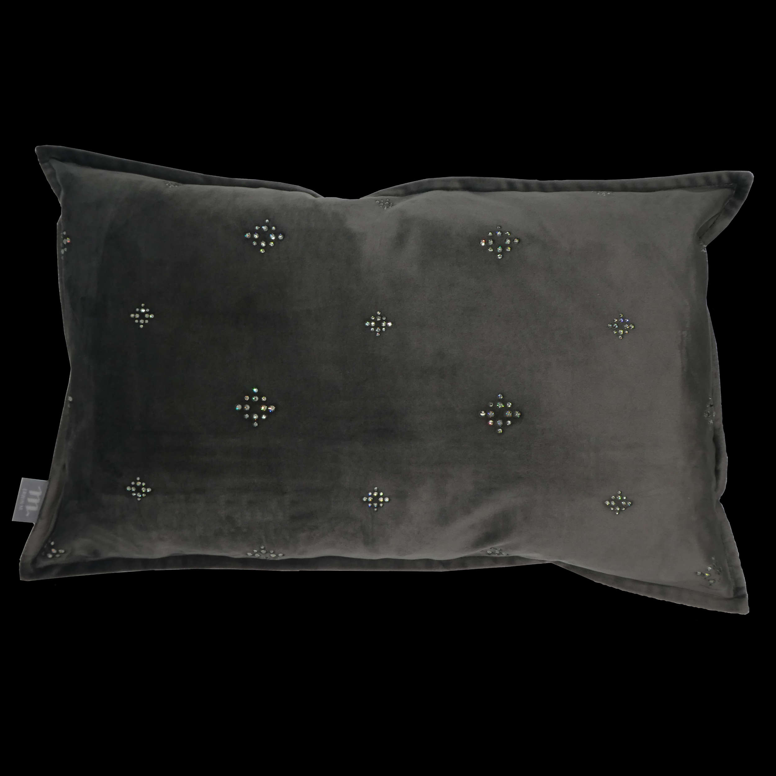 – Hochwertiger Kissenbezug aus weichem Samt für ein luxuriöses Gefühl – Veredelt mit funkelnden Strasssteinen für einen eleganten Akzent – In moderner Farbe Graphit gehalten, ideal für zeitgemäße Einrichtungen – Maße von 50 x 32 cm passen perfekt in moderne Wohnräume – Material: 100% Polyester (PES), pflegeleicht