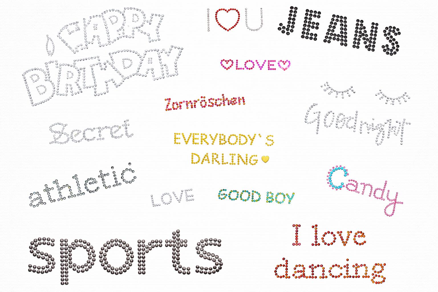 Diverse Motive zum Aufbügeln – Set Schriftzüge, 14 div. Motive