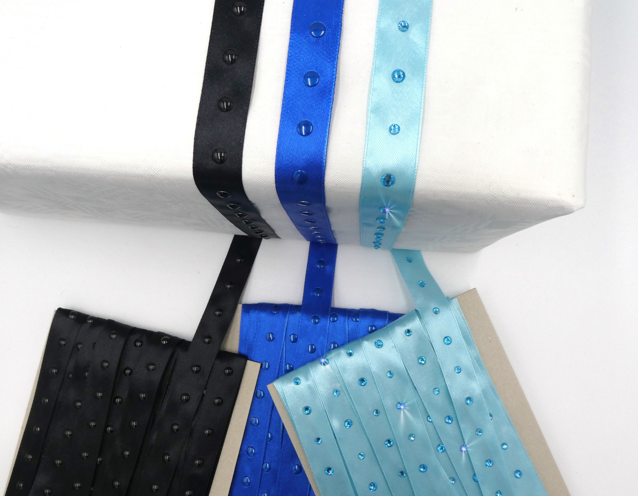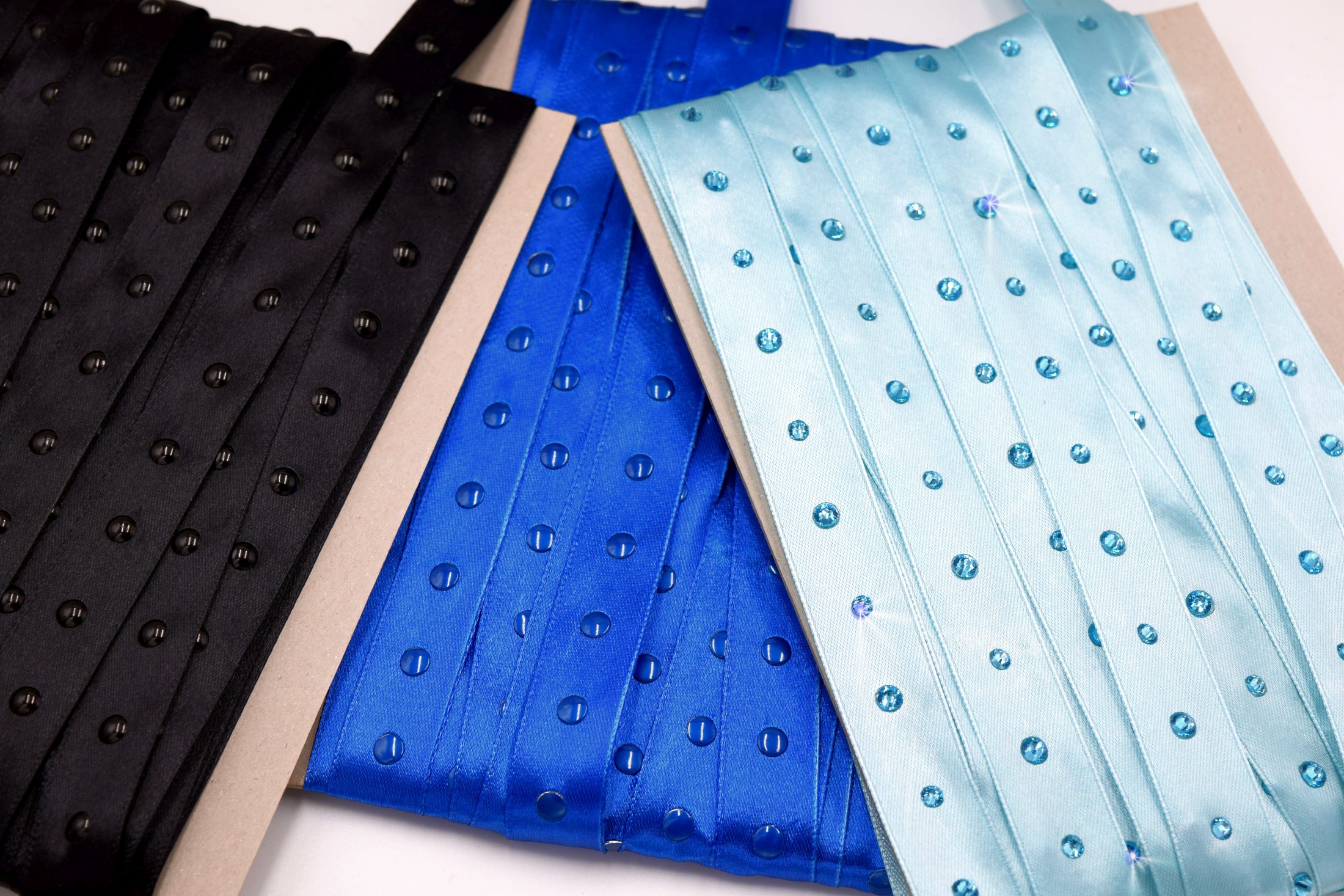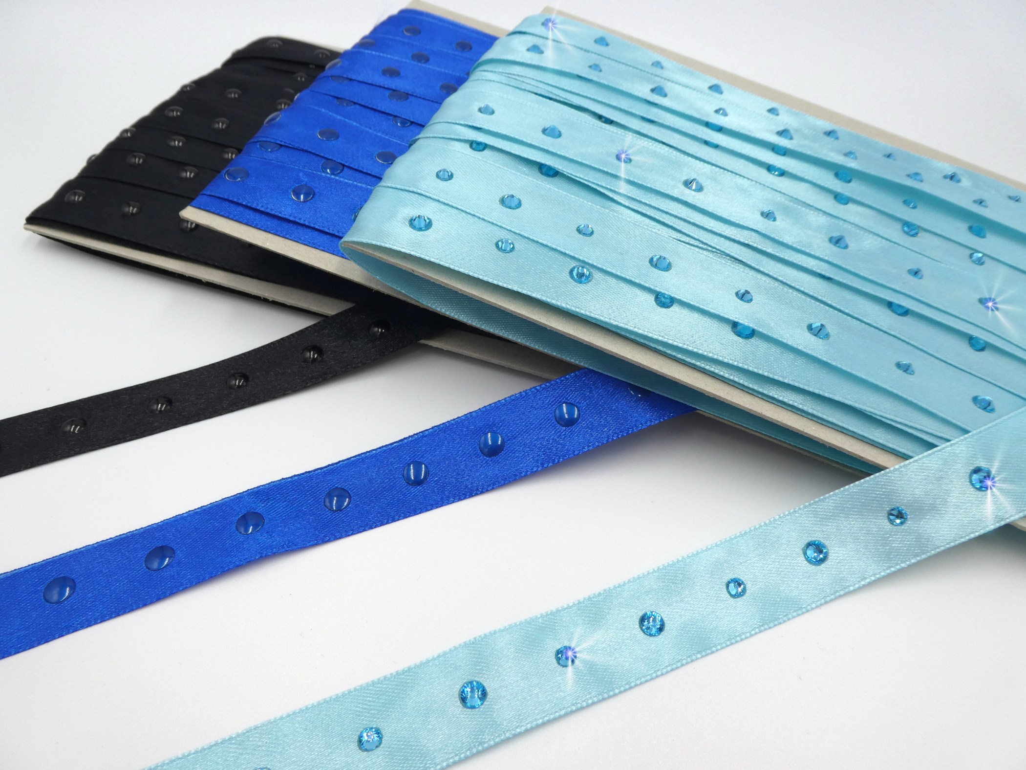 Satinbänder 20 mm mit Strass veredelt – Set blau/schwarz