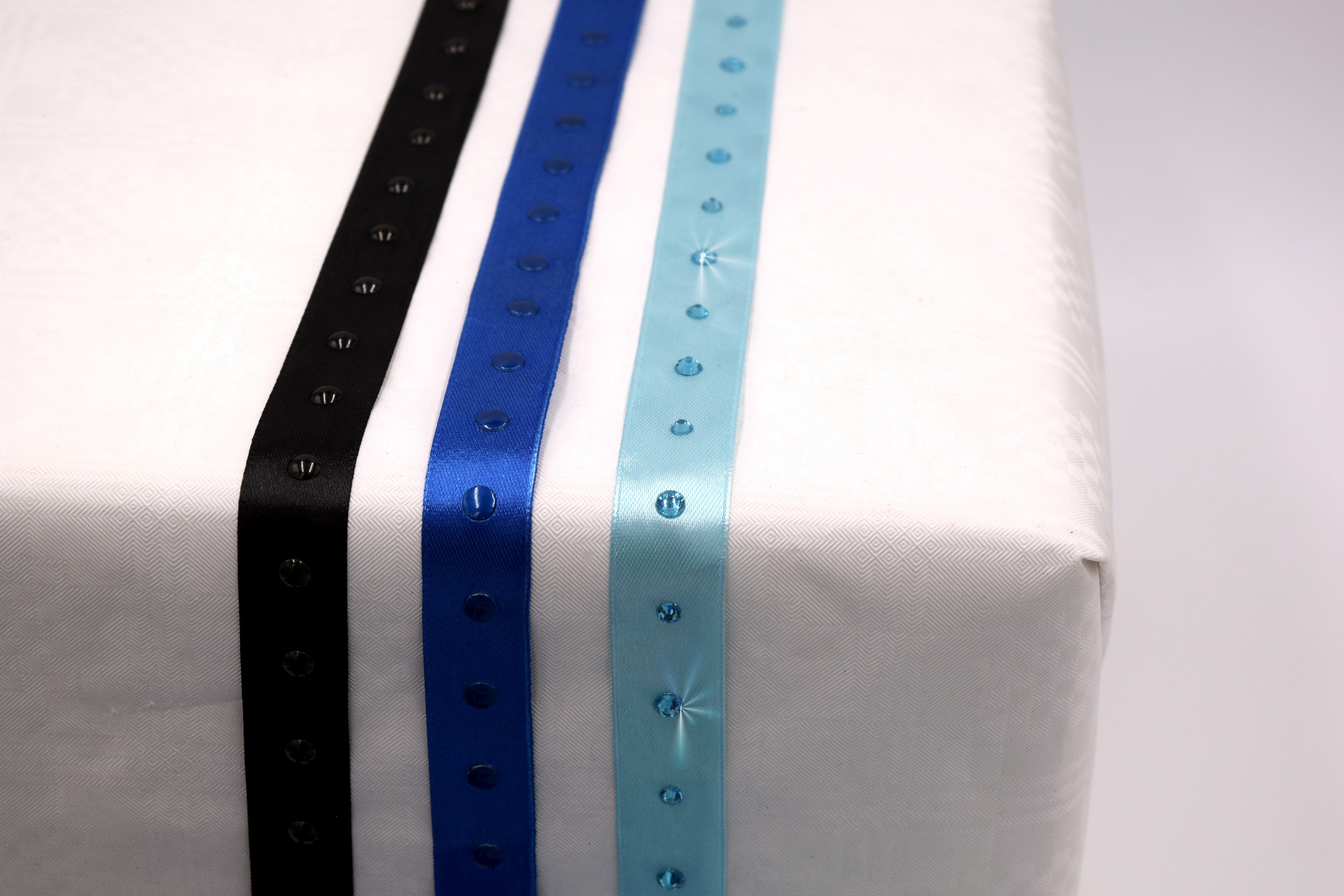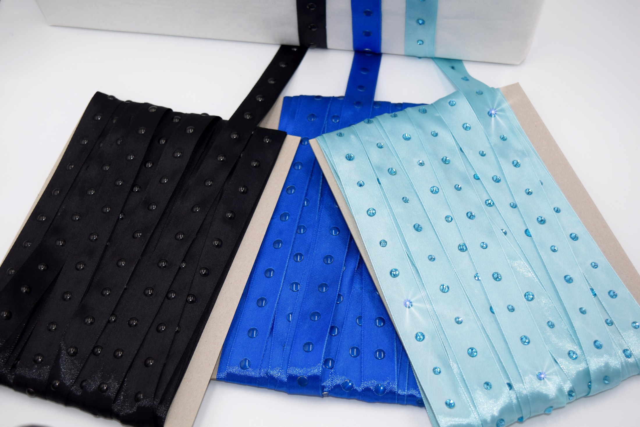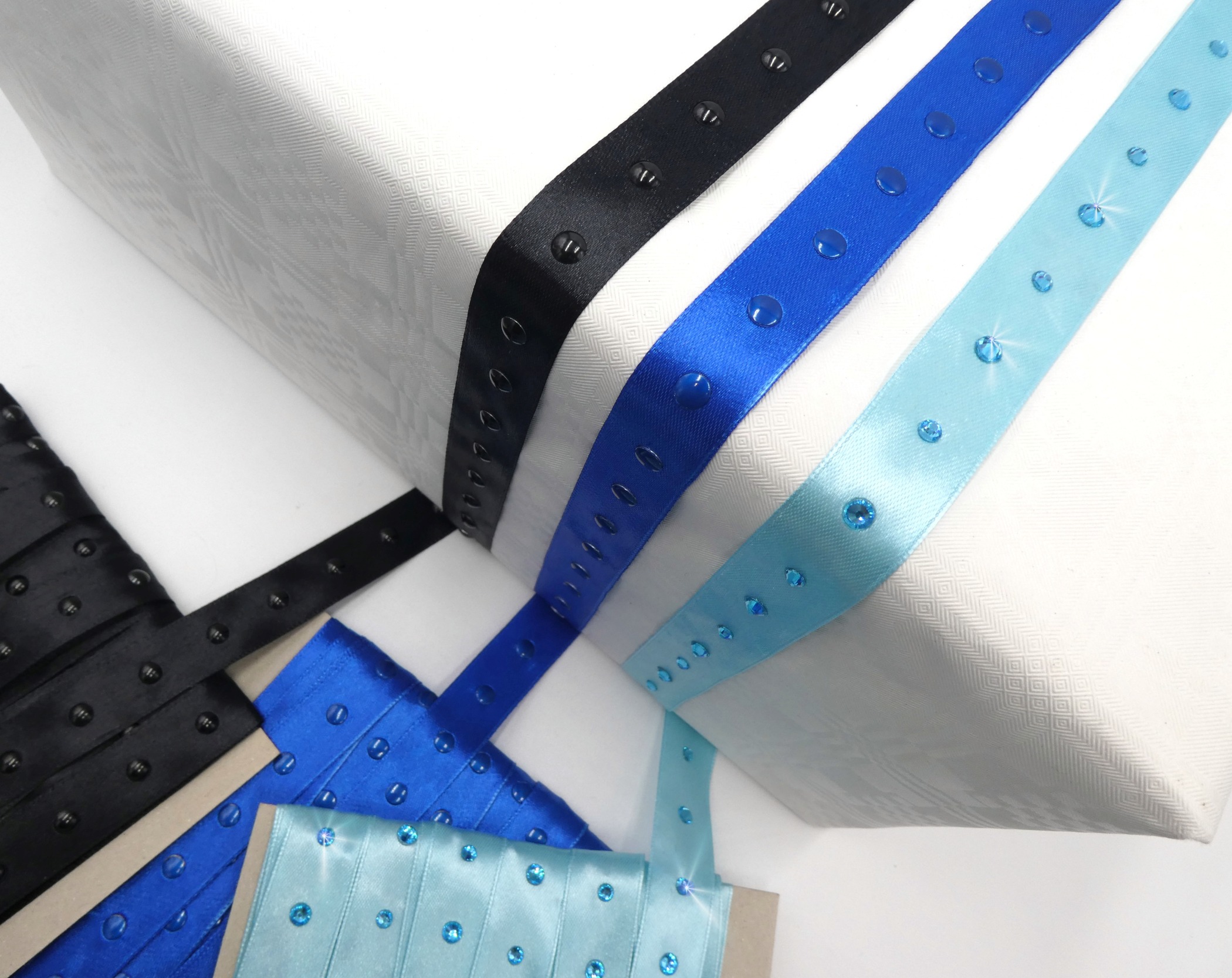 Satinbänder 20 mm mit Strass veredelt – Set blau/schwarz