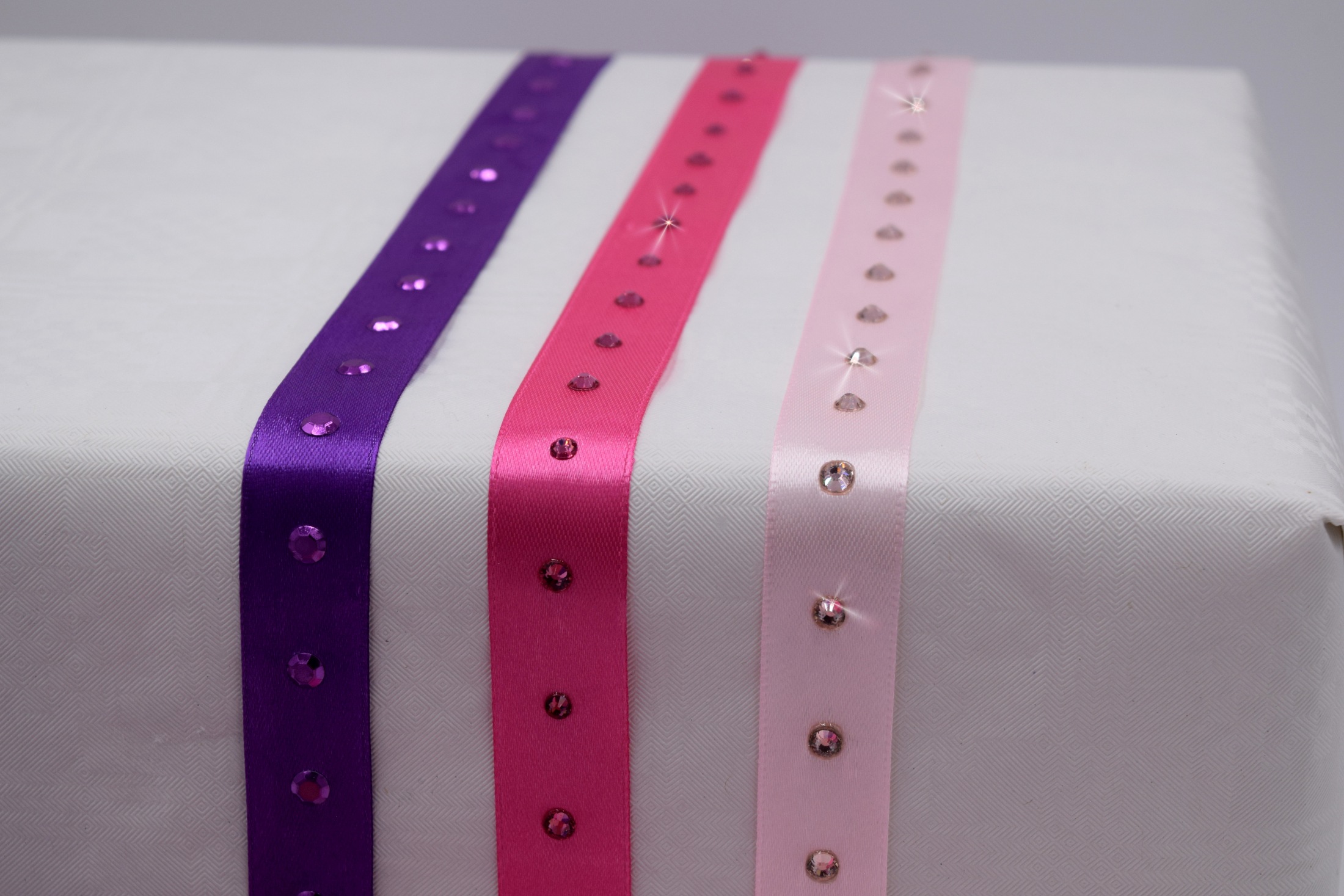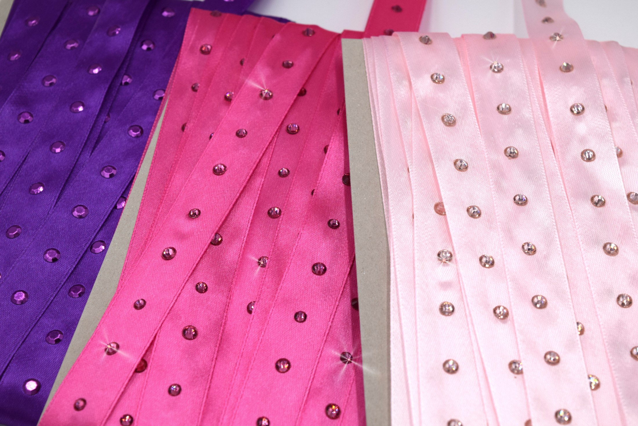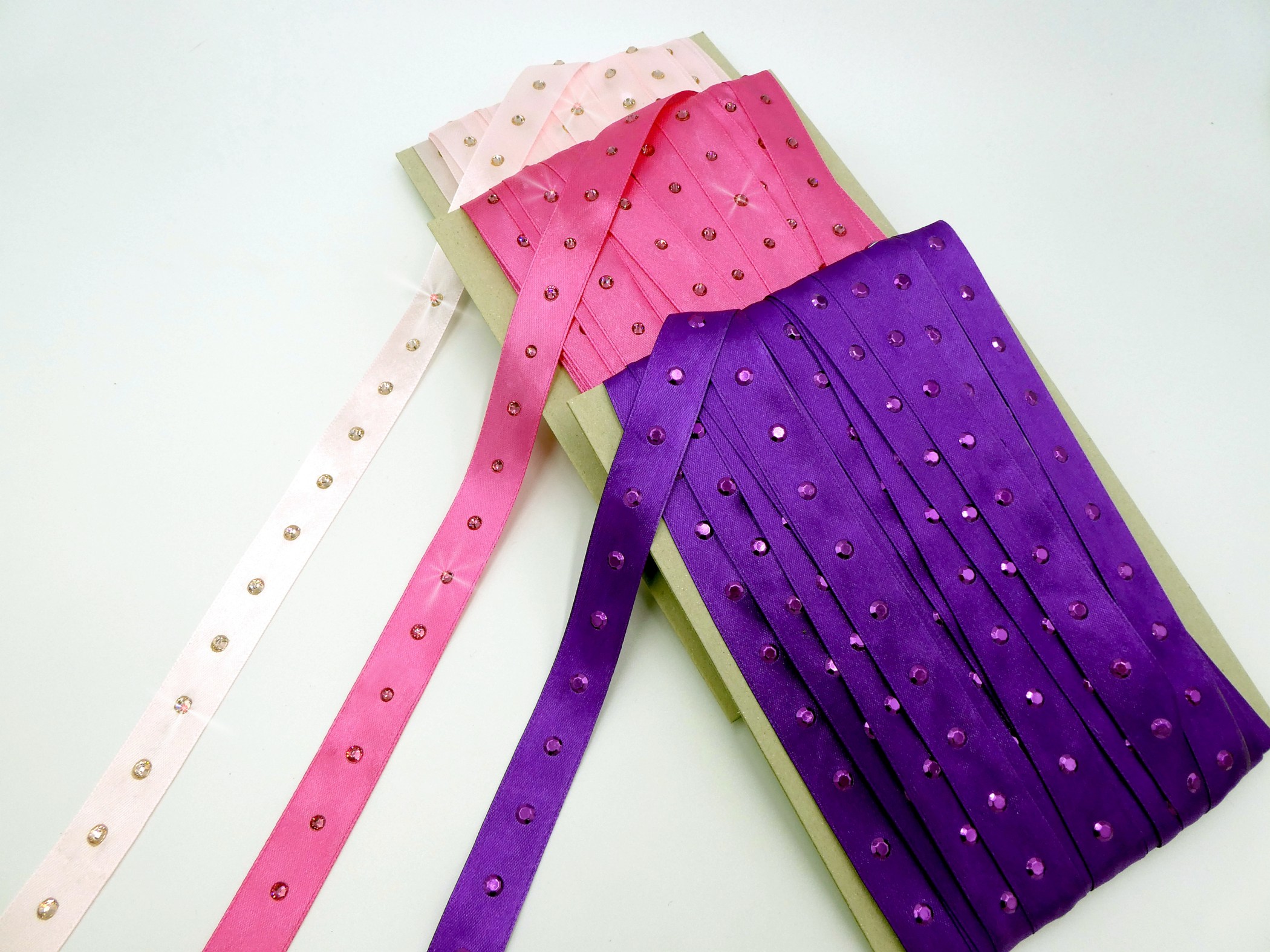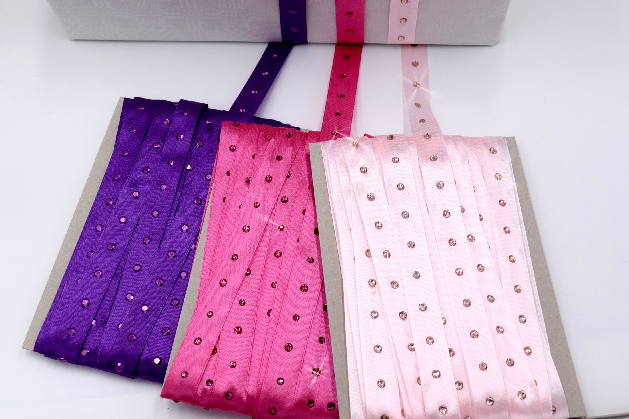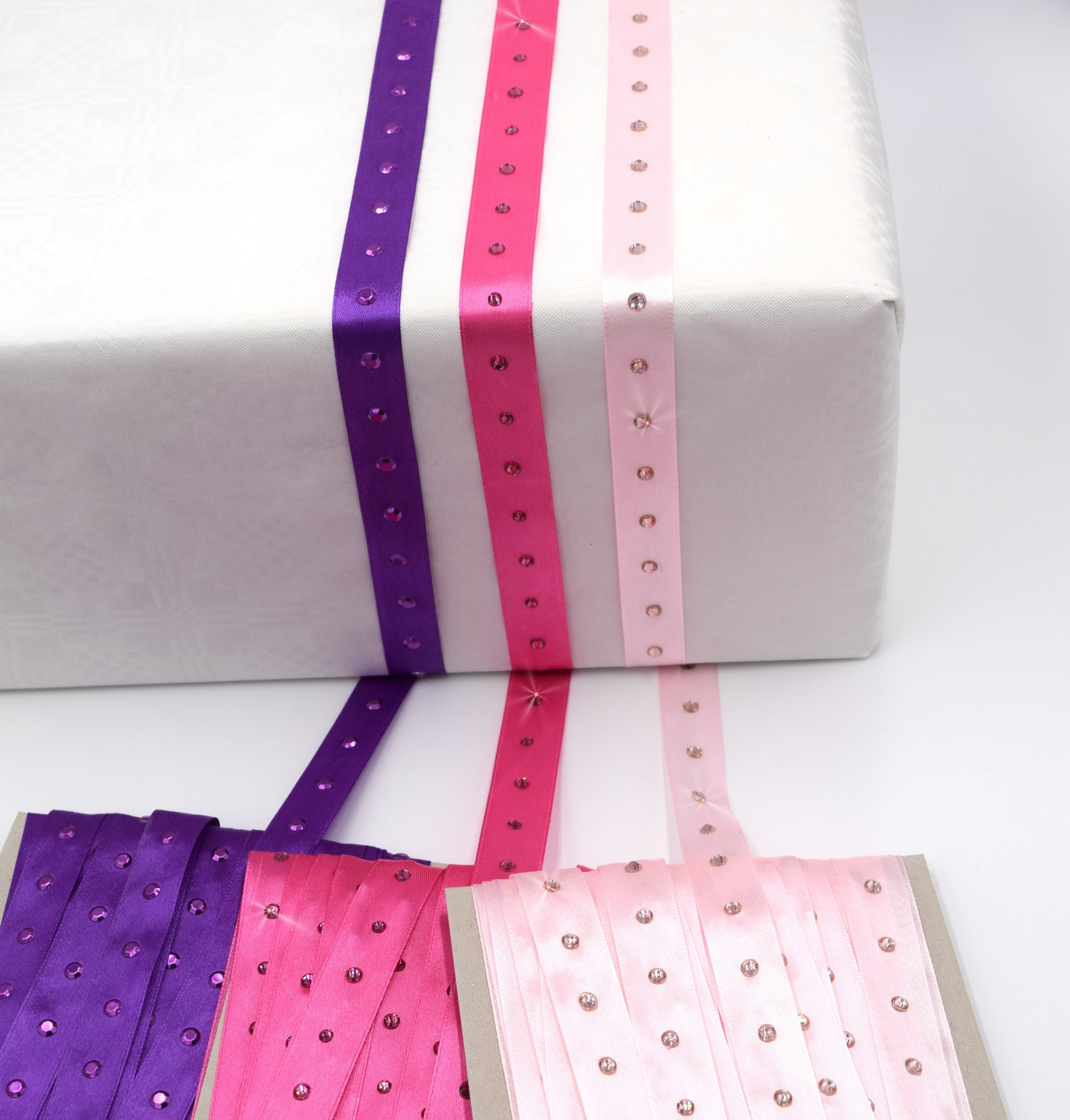 Satinband mit Strasssteinen, Epoxysteinen und Rhinestuds bestückt je 2 m, Gesamt 6 m