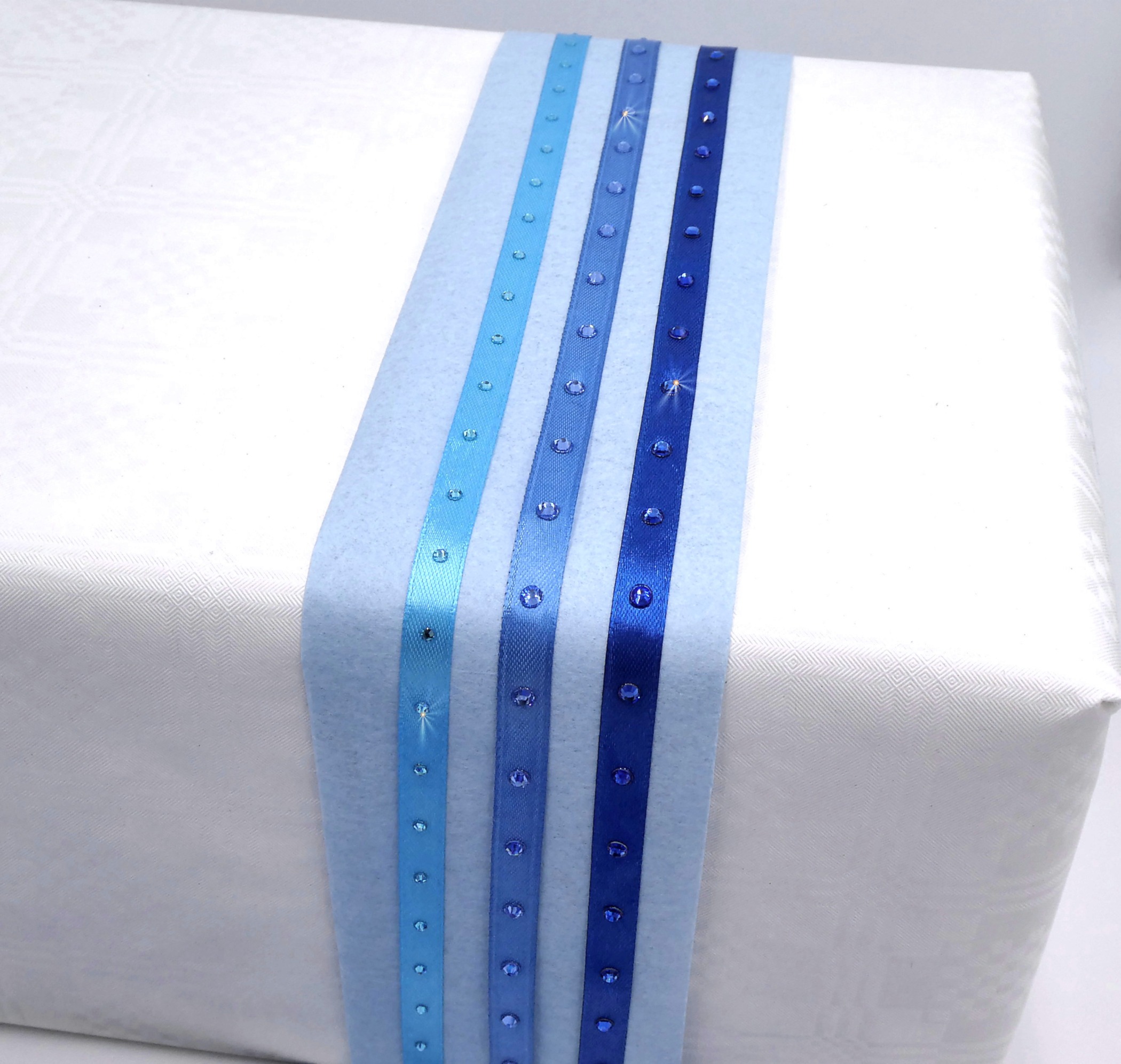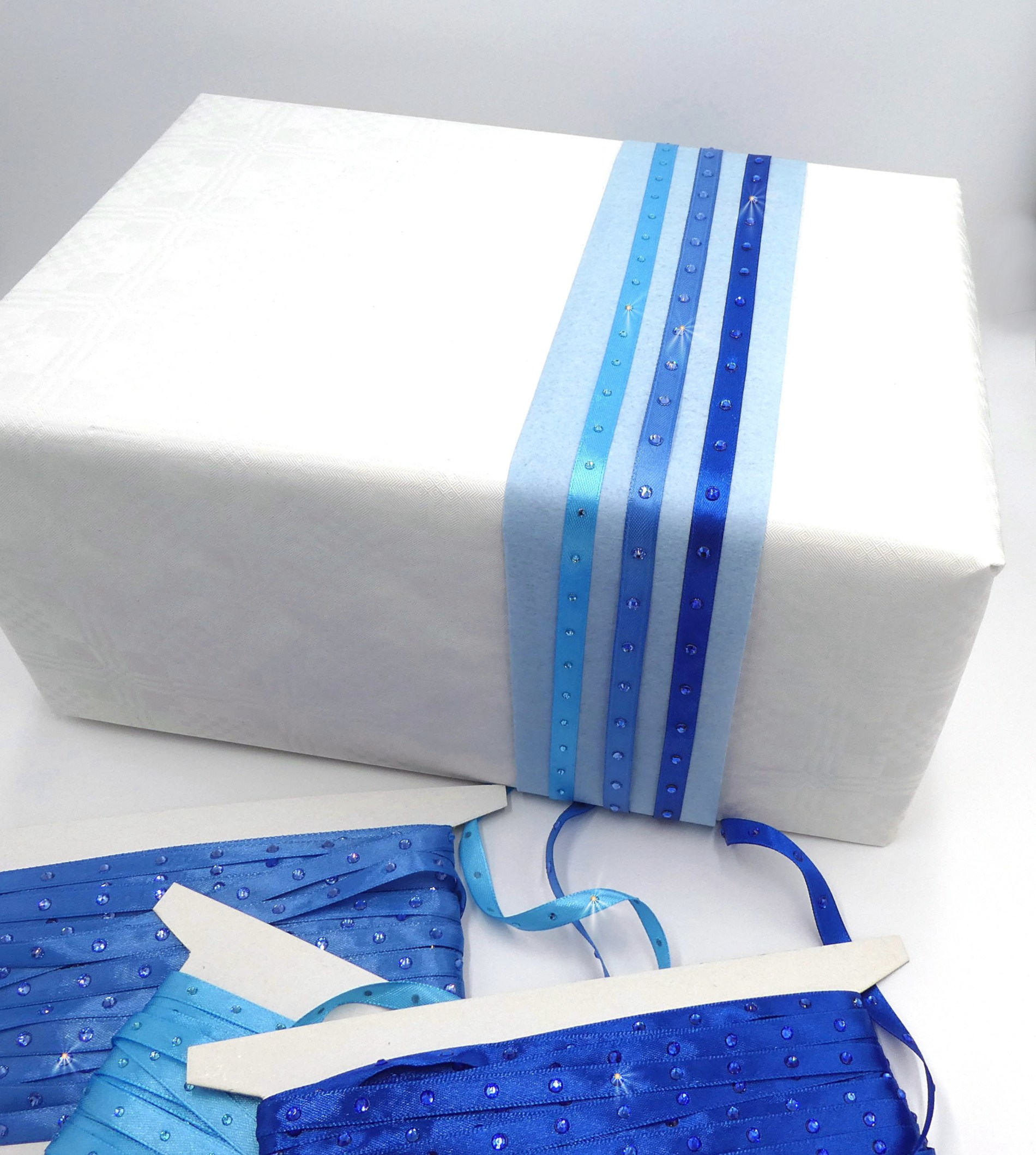 Satinbänder 10mm mit Strass veredelt – Set blau