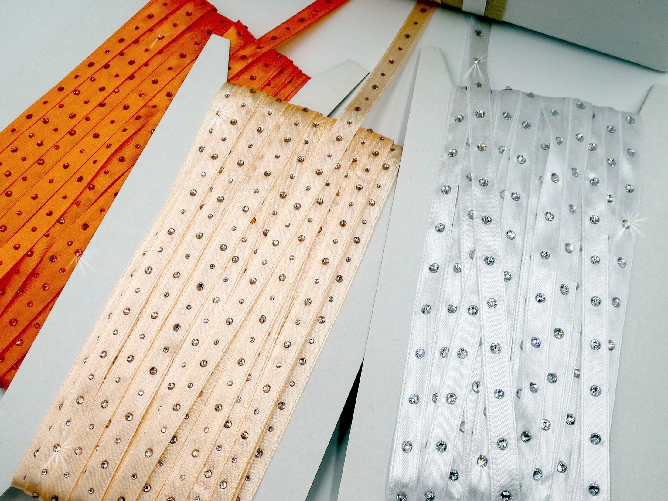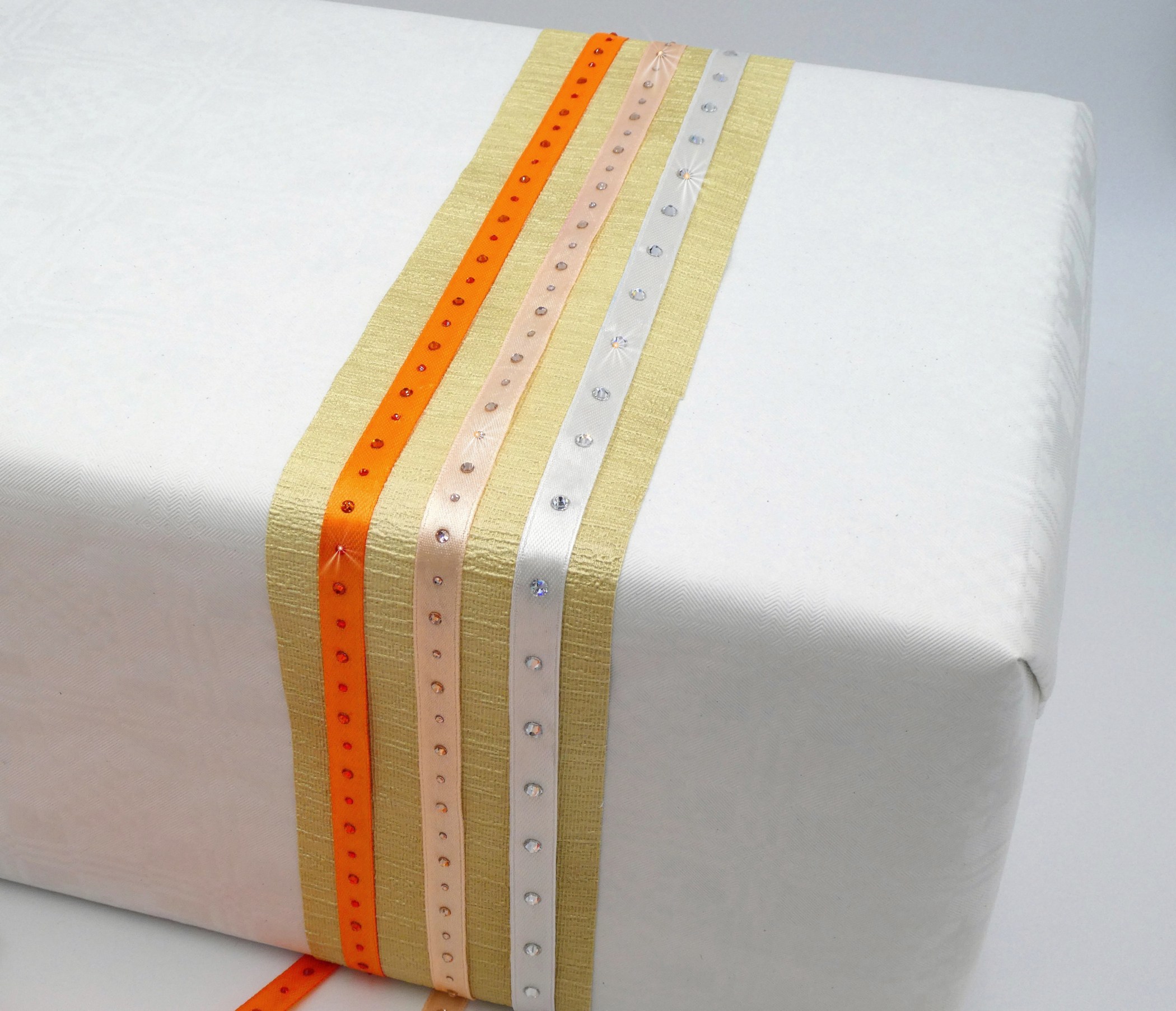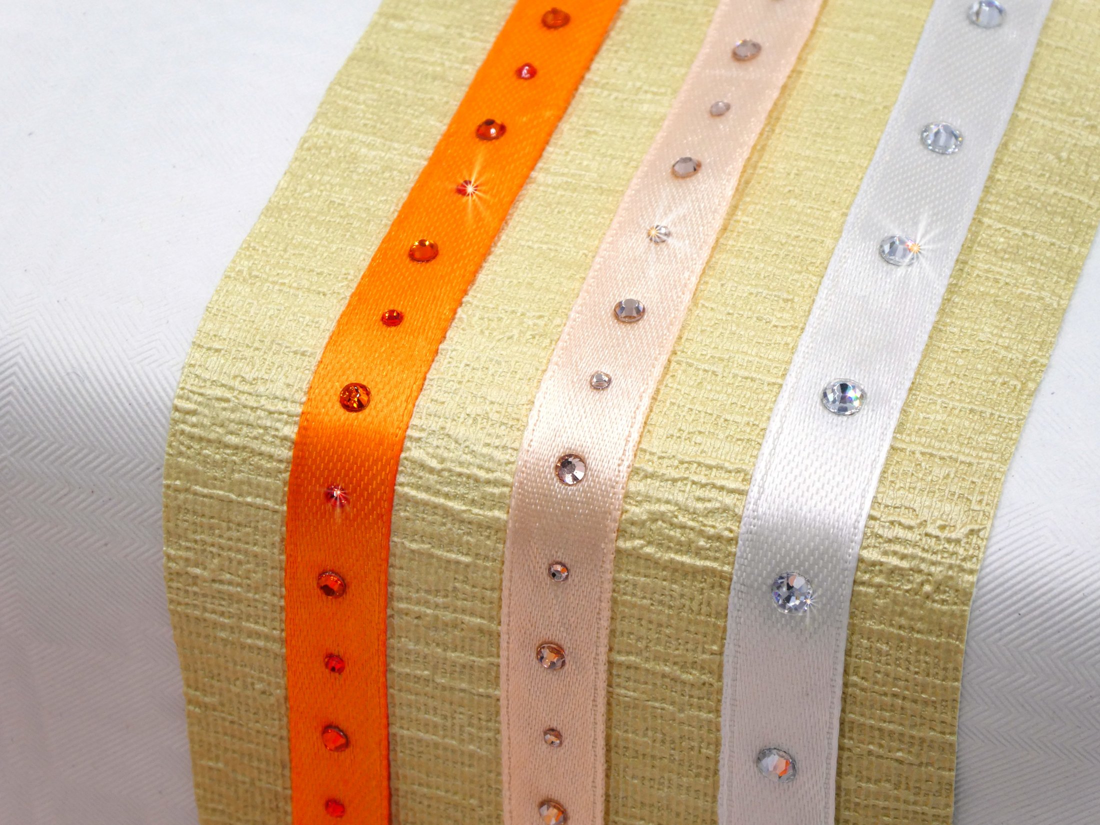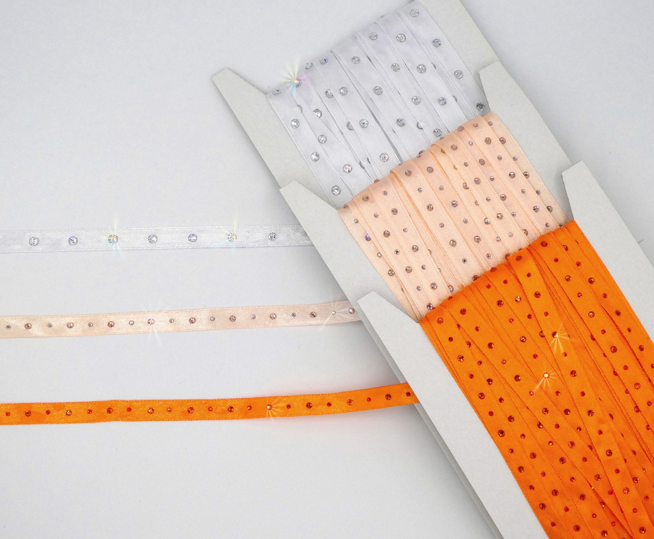 Satinbänder 10mm mit Strass veredelt – Set orange/weiss