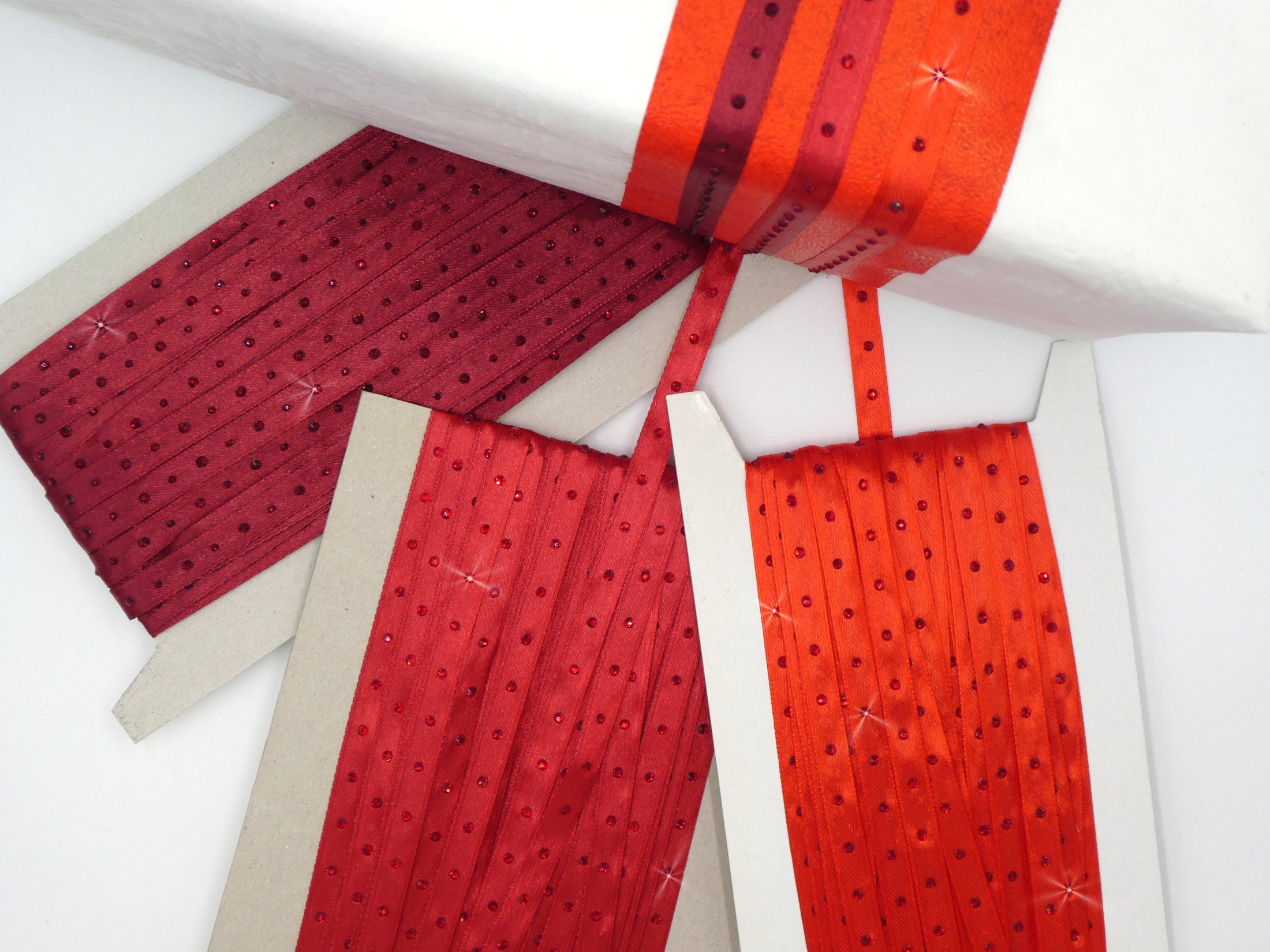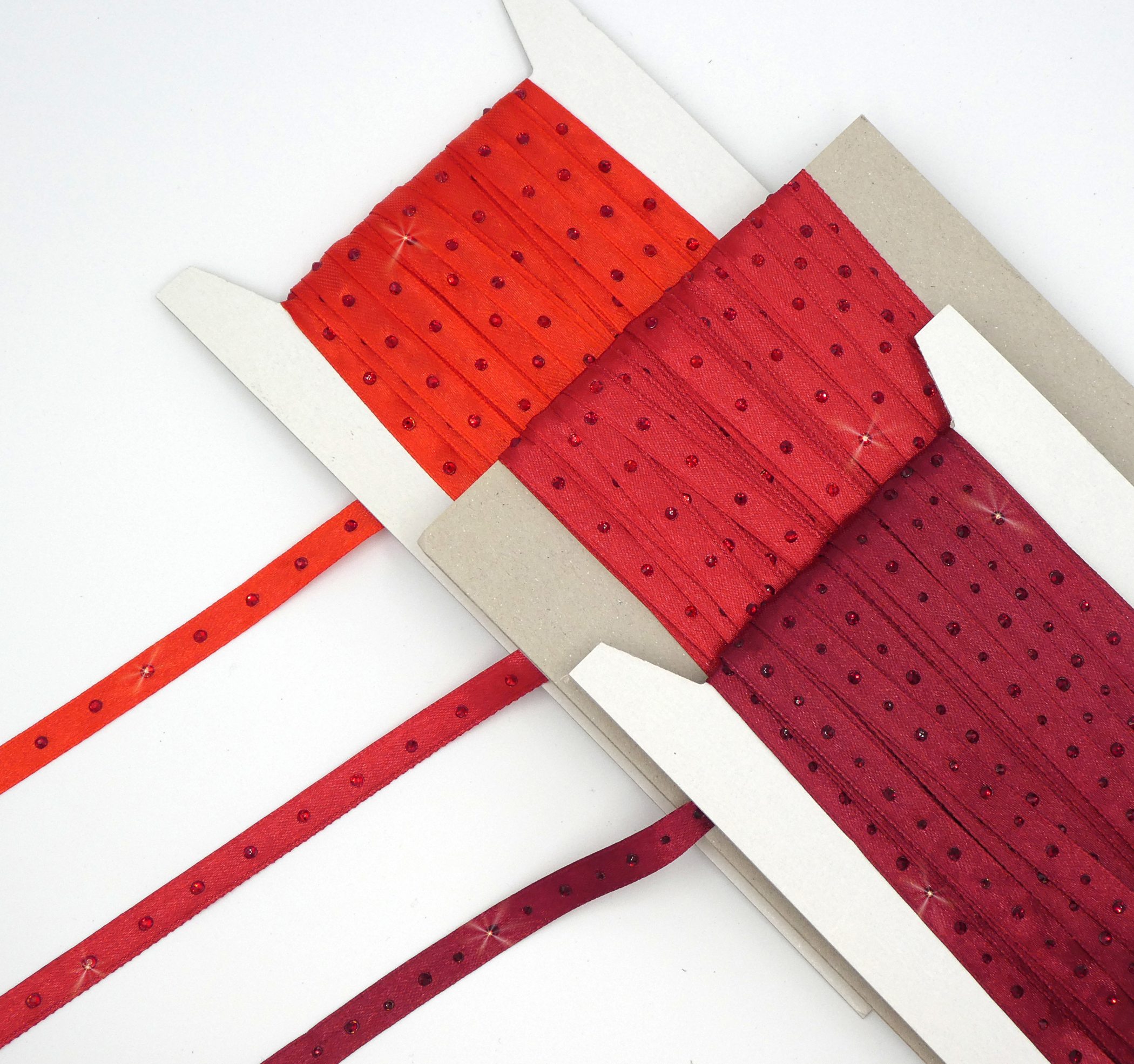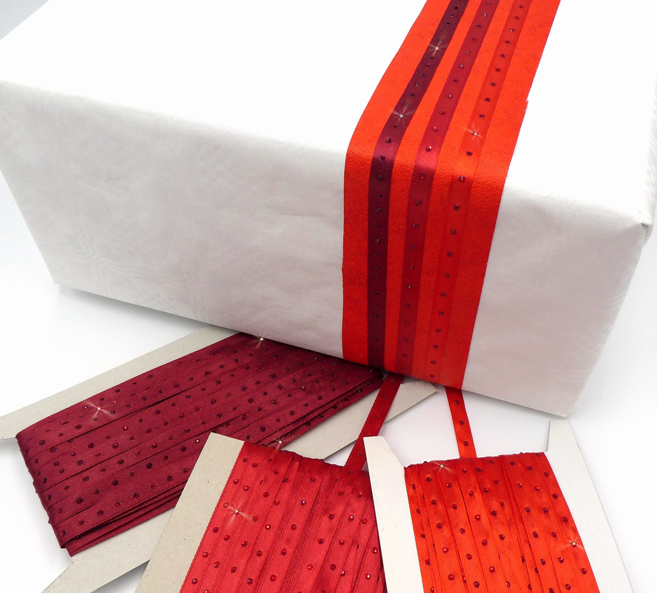 Satinbänder 10mm mit Strass veredelt – Set rot
