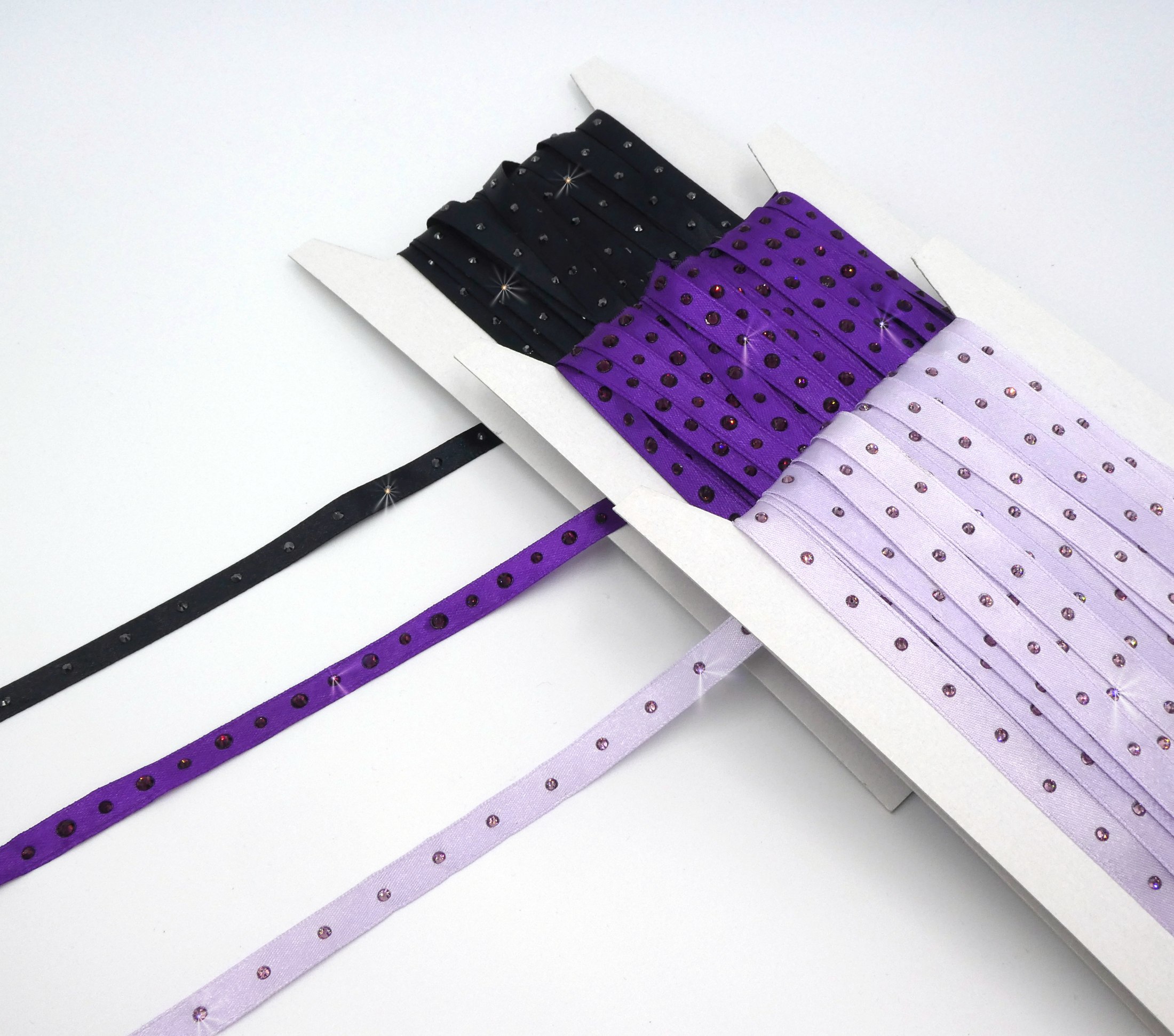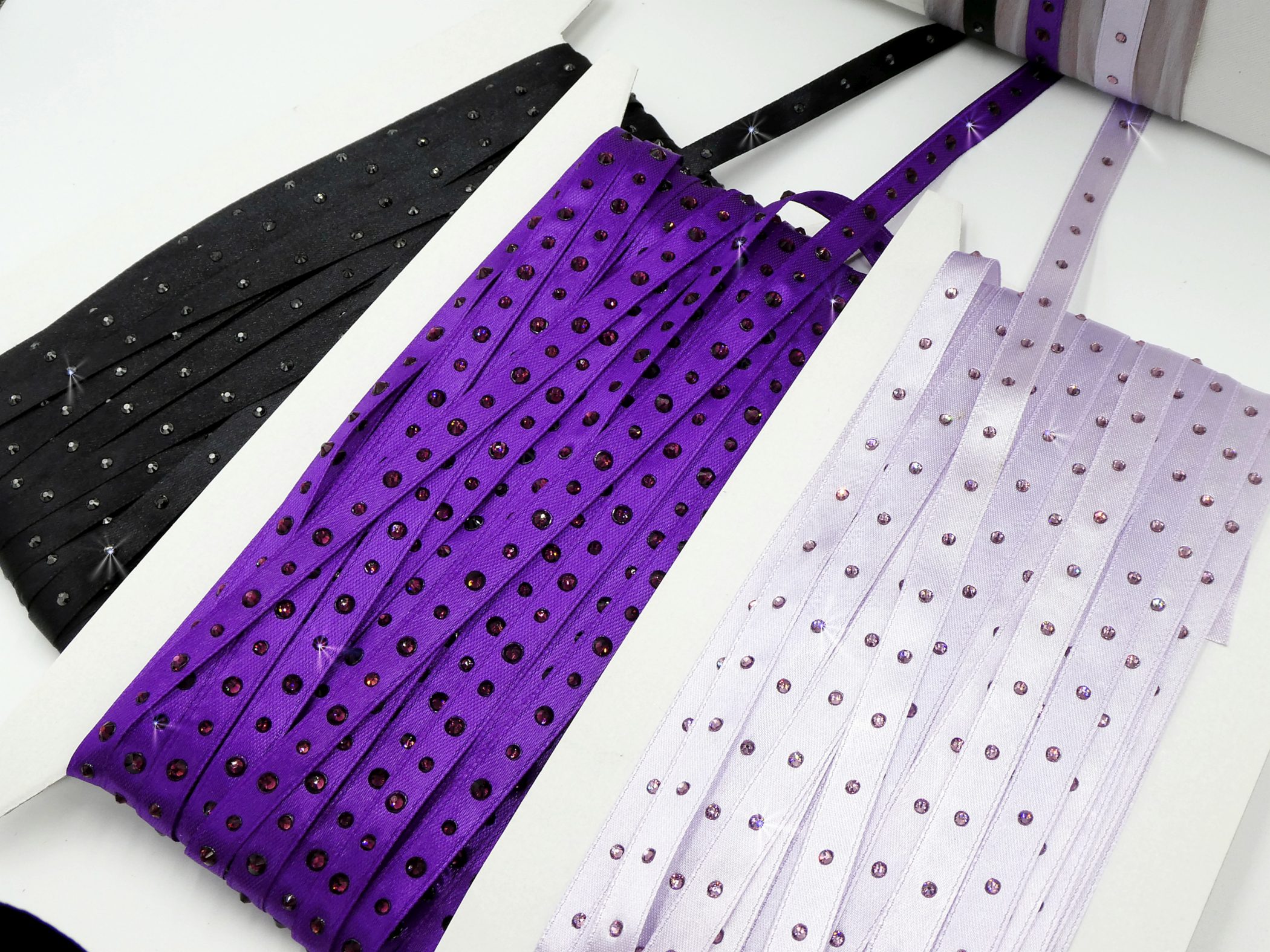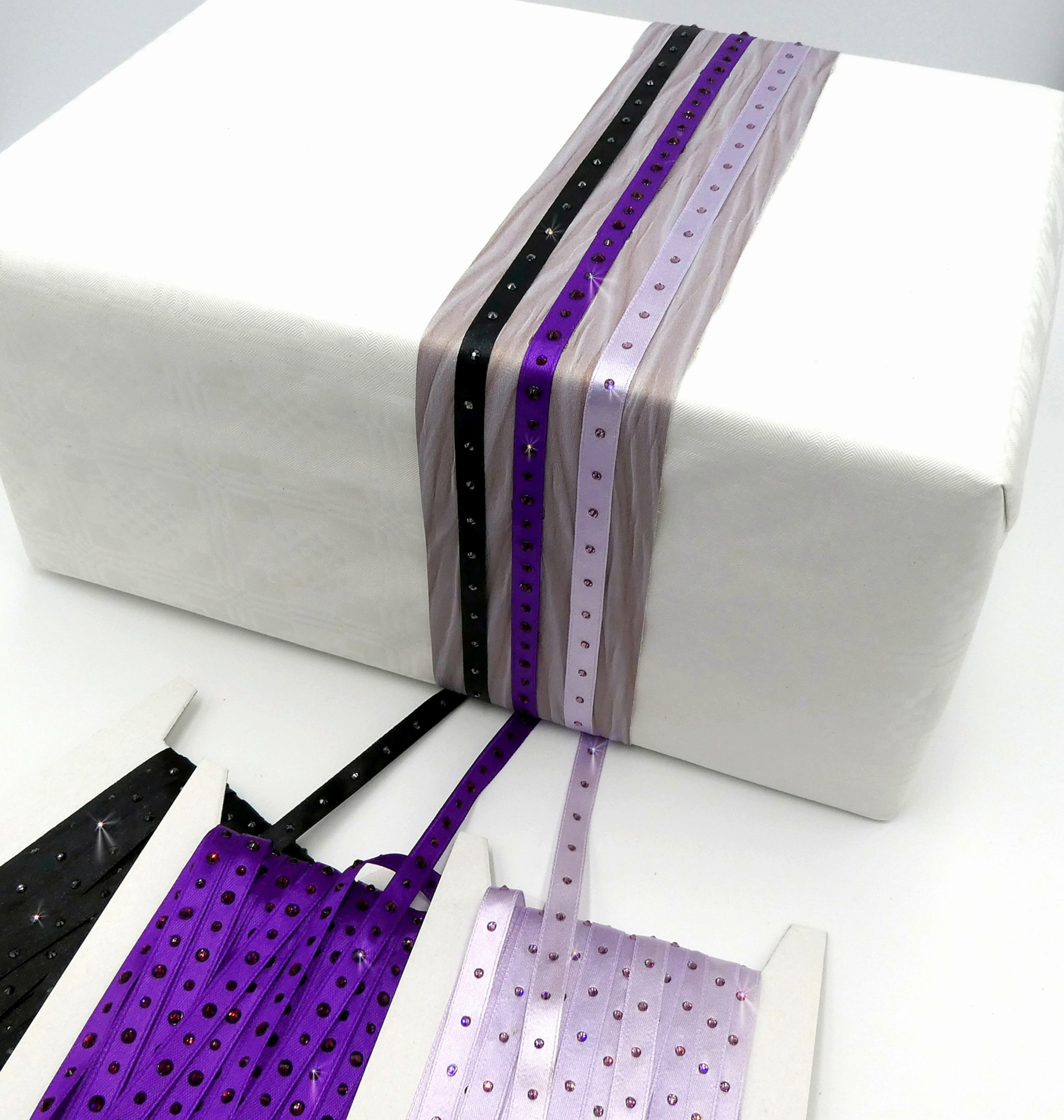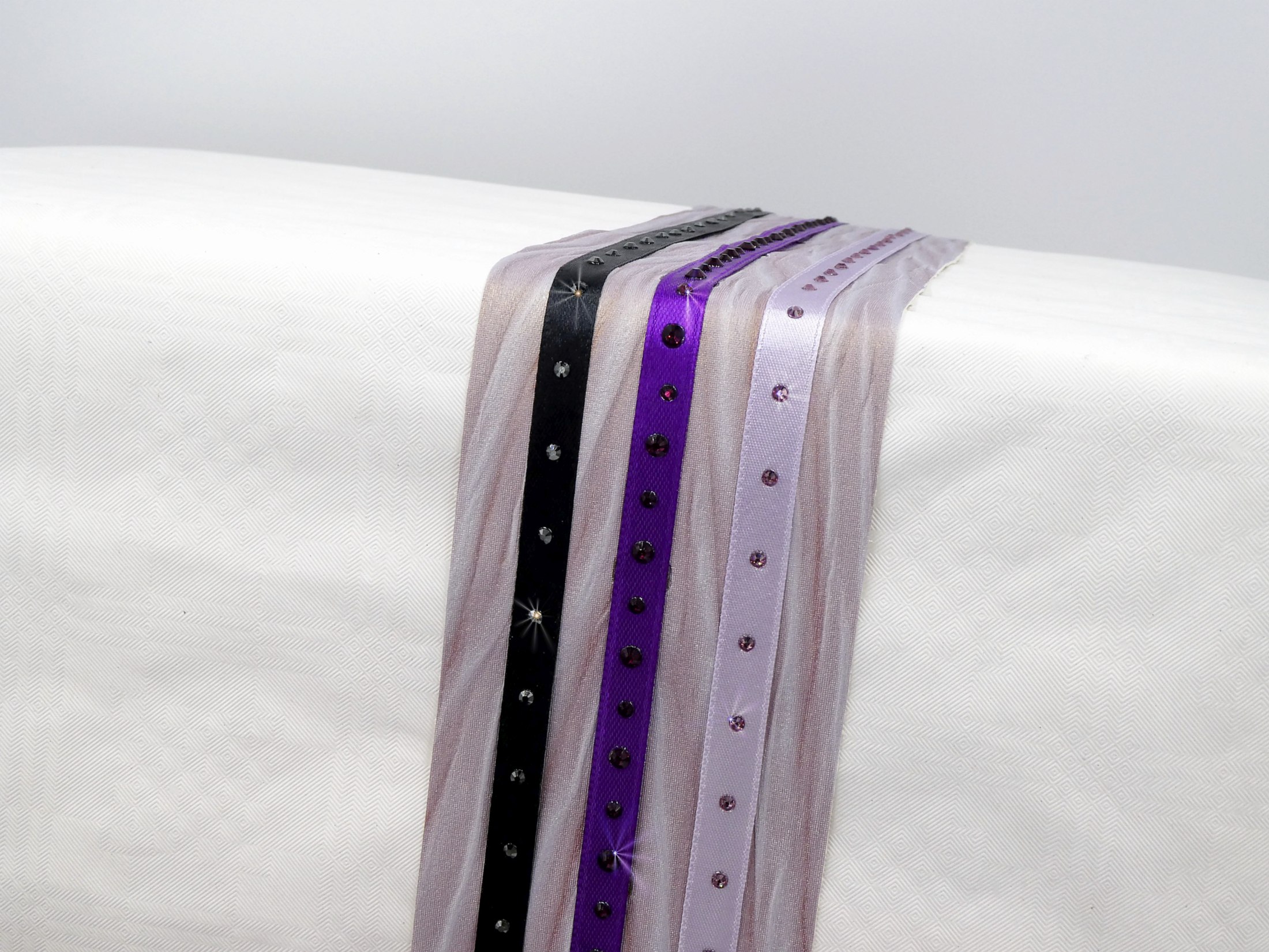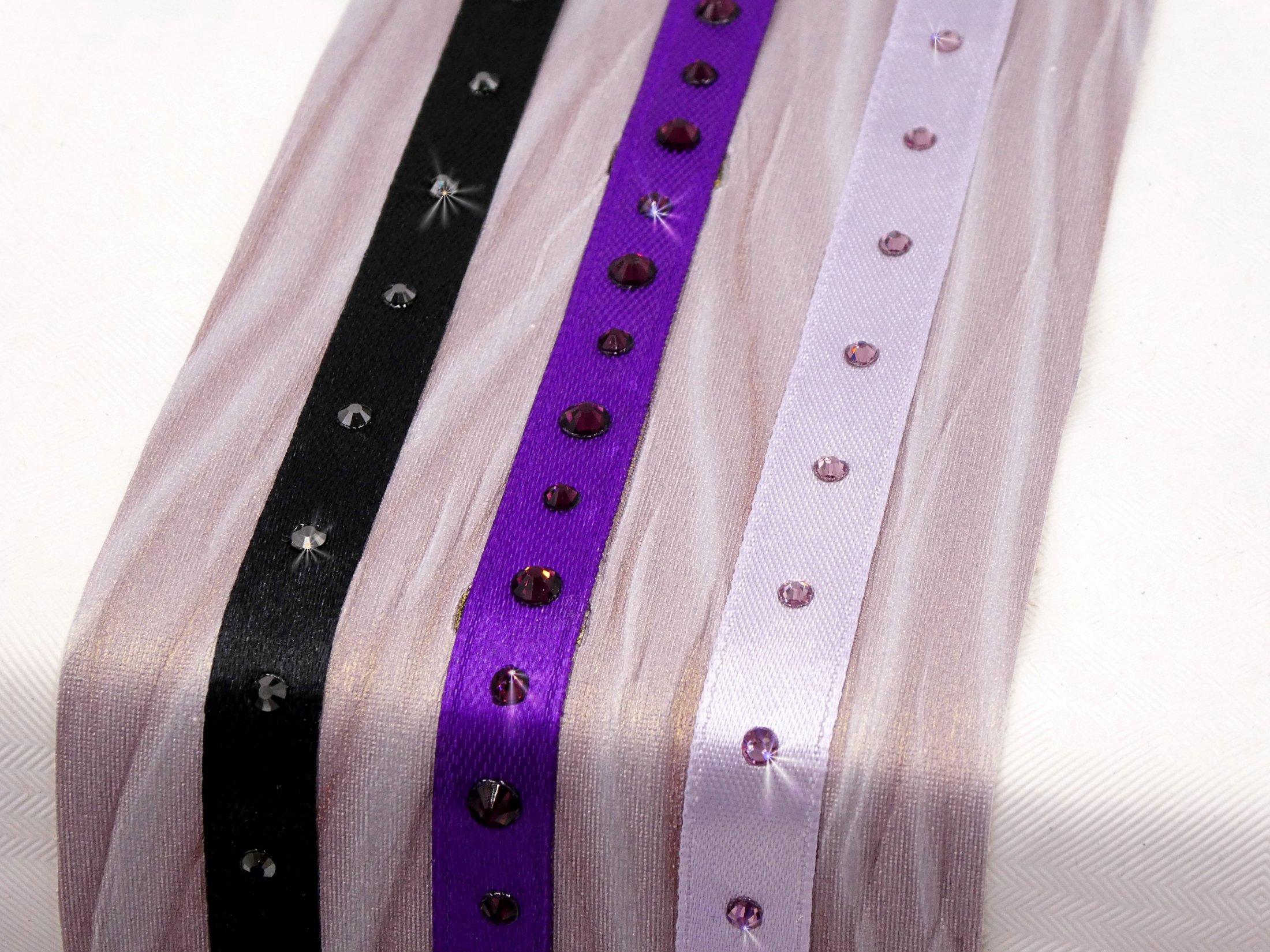 Satinbänder 10mm mit Strass veredelt – Set violett/schwarz