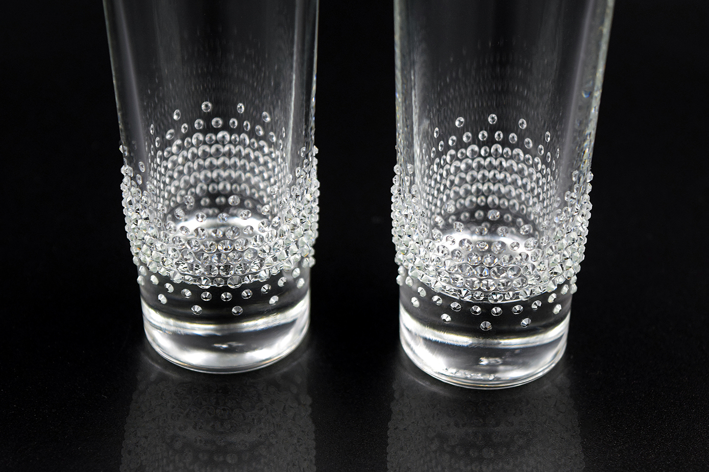 Verziert mit 280 Strass Steinen aus Österreich pro Glas.