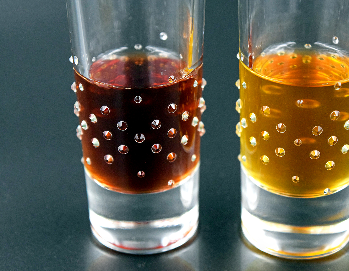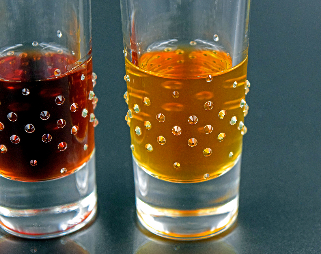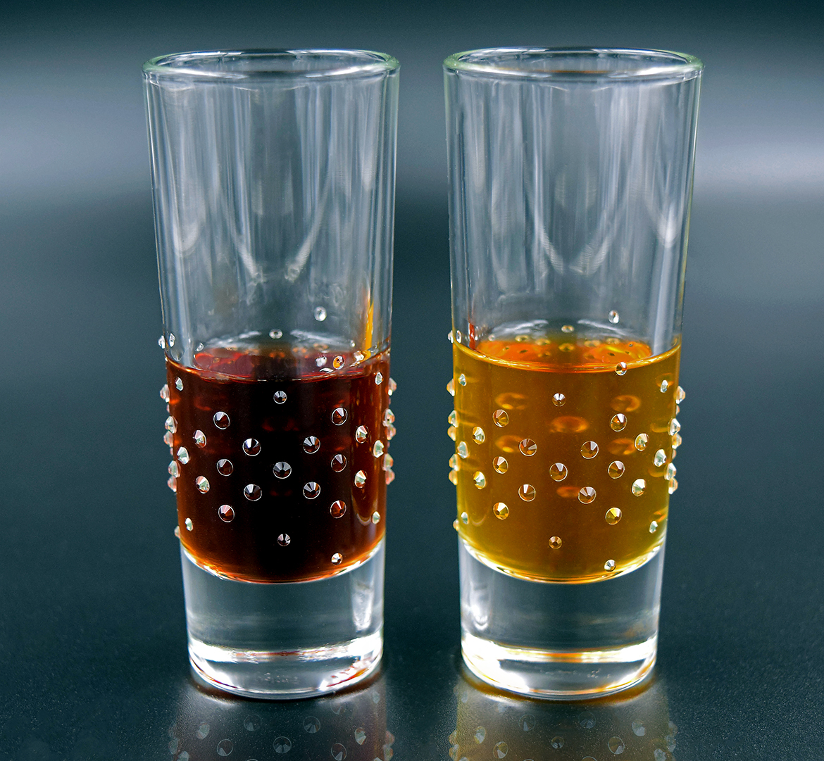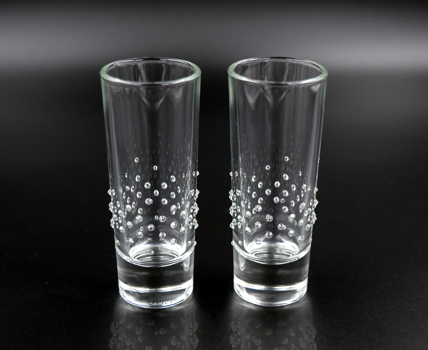 Verziert mit 70 Strass Steinen aus Österreich pro Glas.