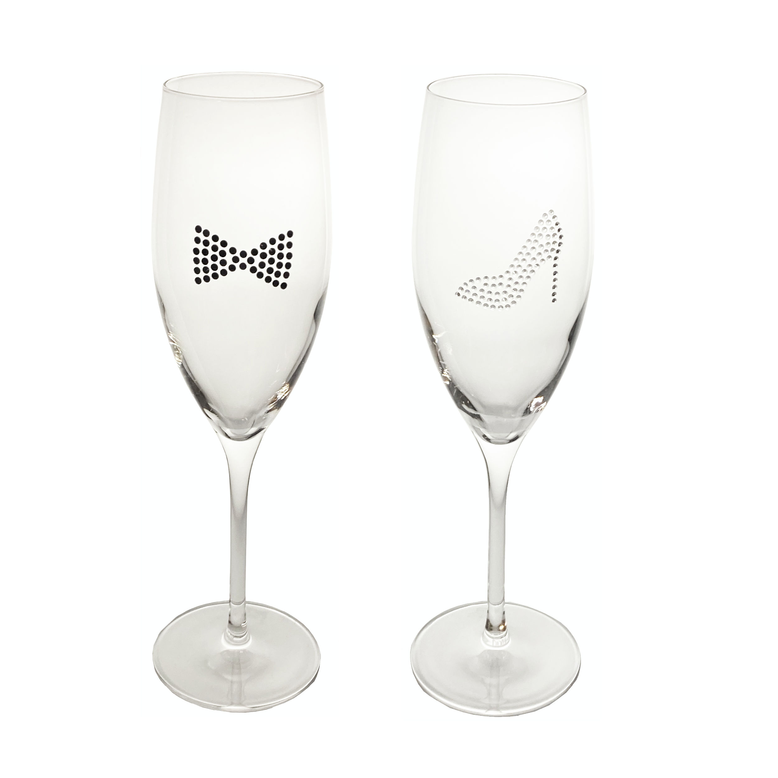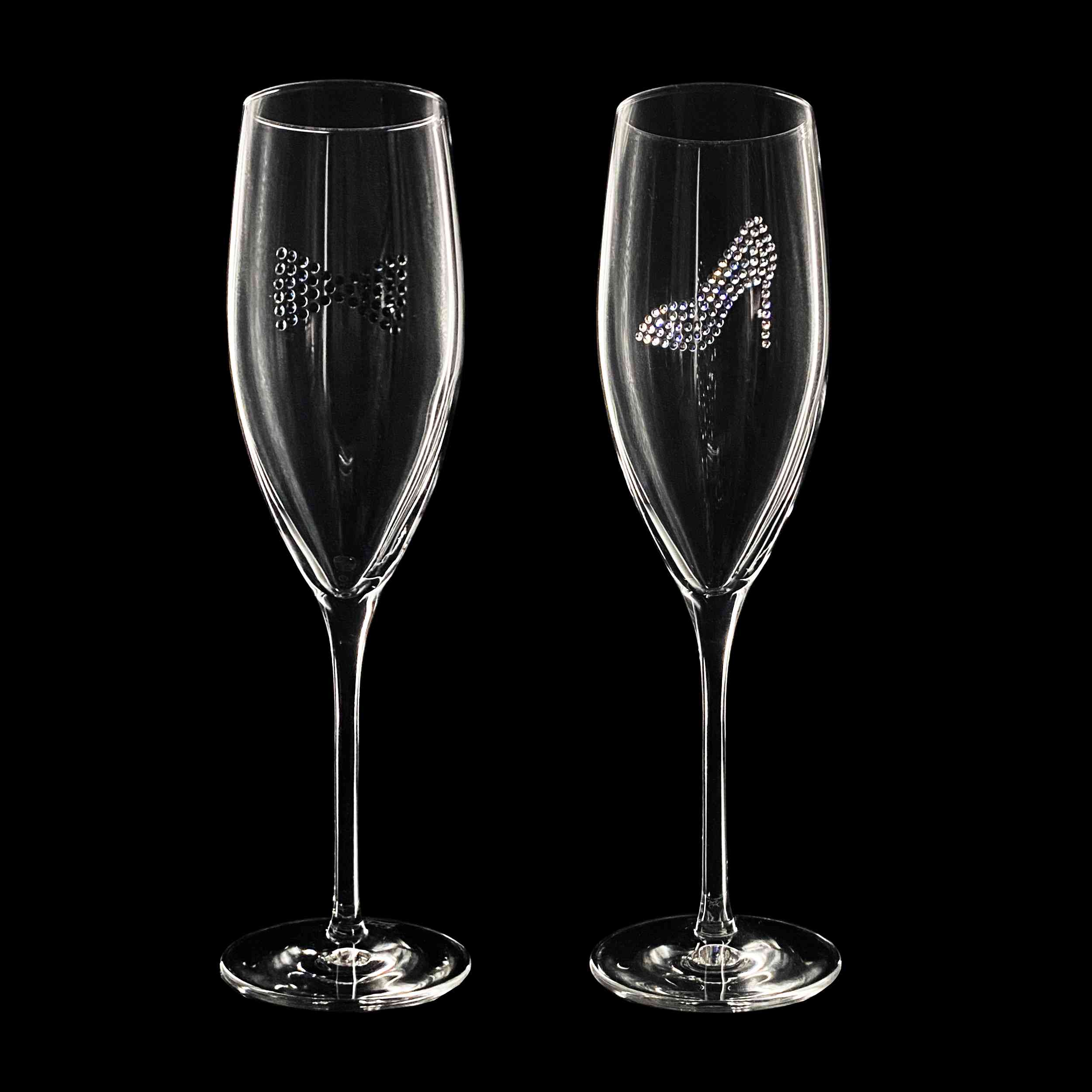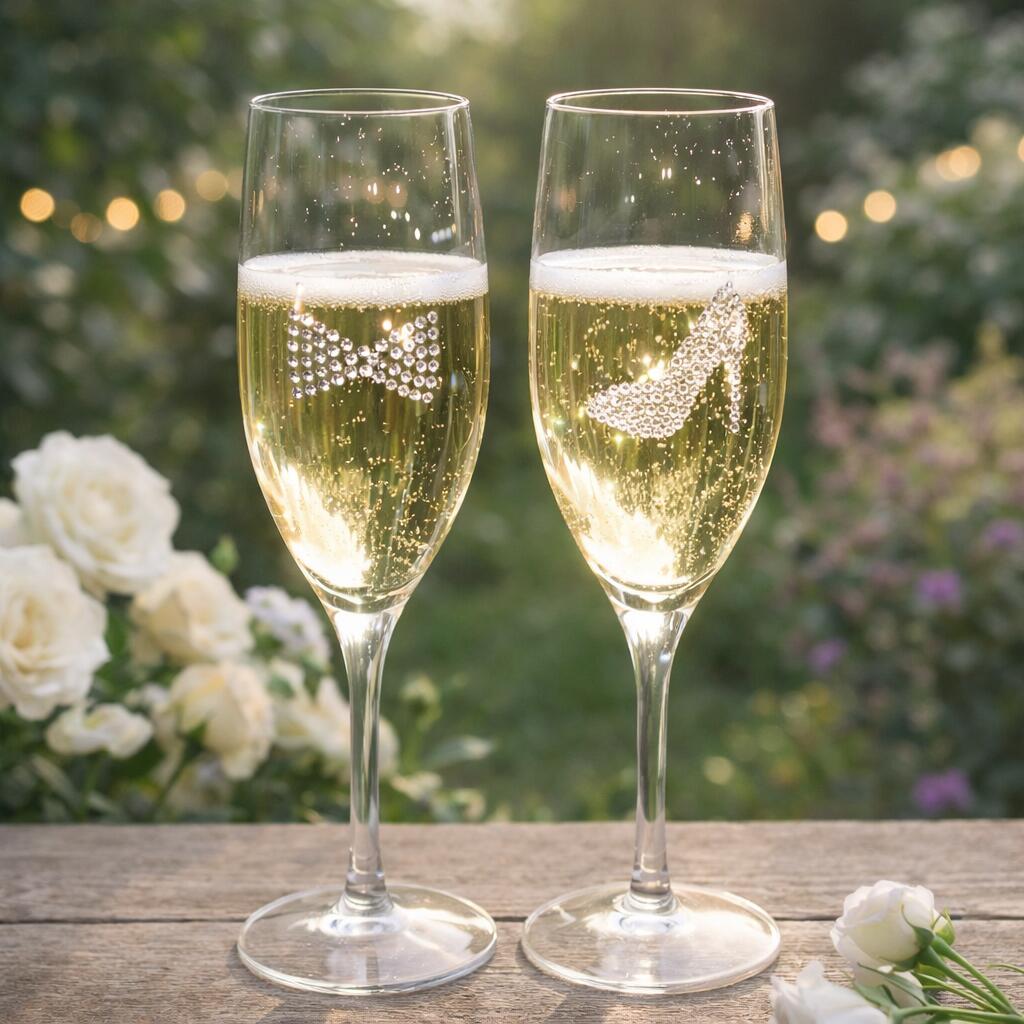 Ein Hauch von Eleganz für besondere Momente! Diese exklusive Champagnerflöte (278 ml) vereint edles Design mit luxuriösem Glanz. Verziert mit Kristallen aus Österreich, wird jedes Glas zum Hingucker. Das Set umfasst zwei hochwertige Gläser, sorgfältig gefertigt in Europa – ideal für Hochzeiten.