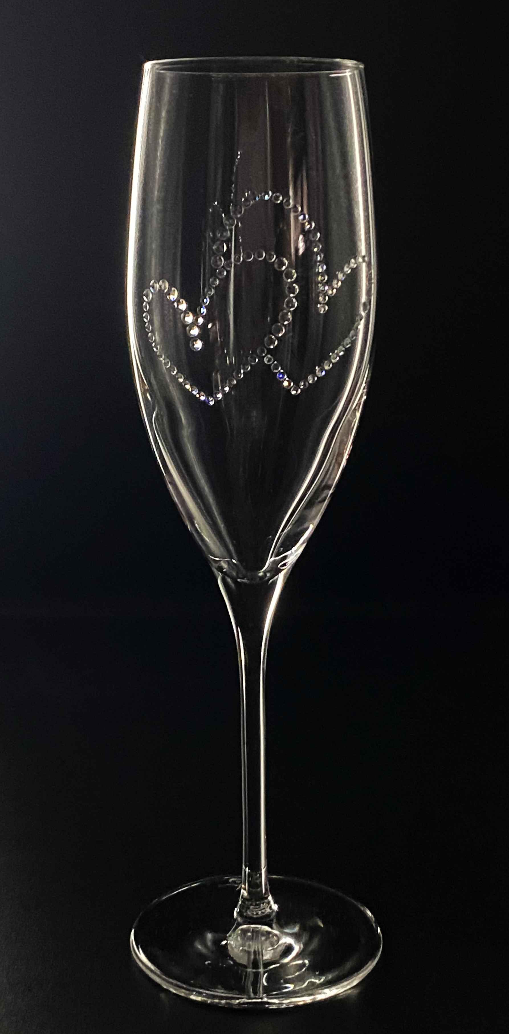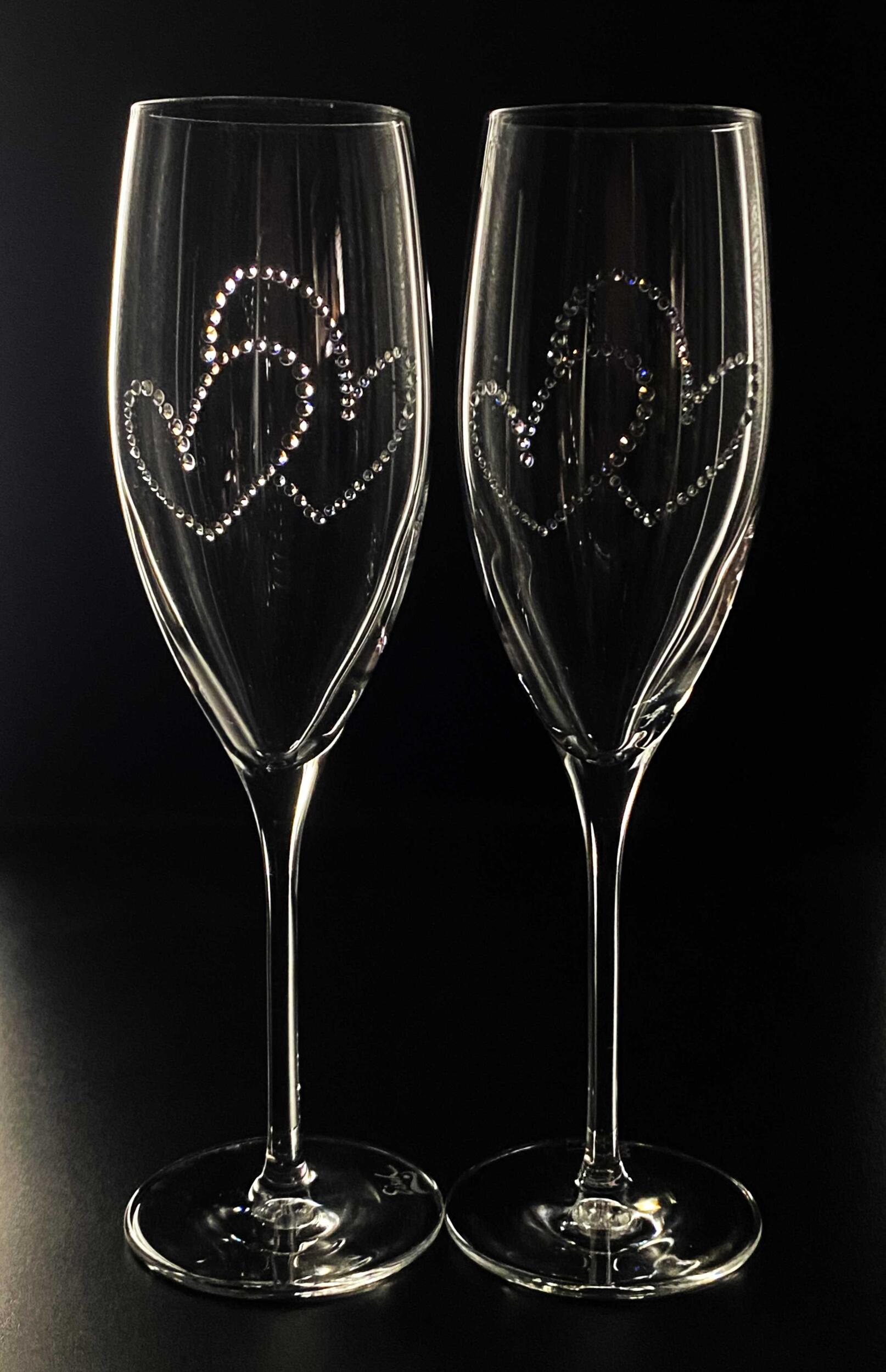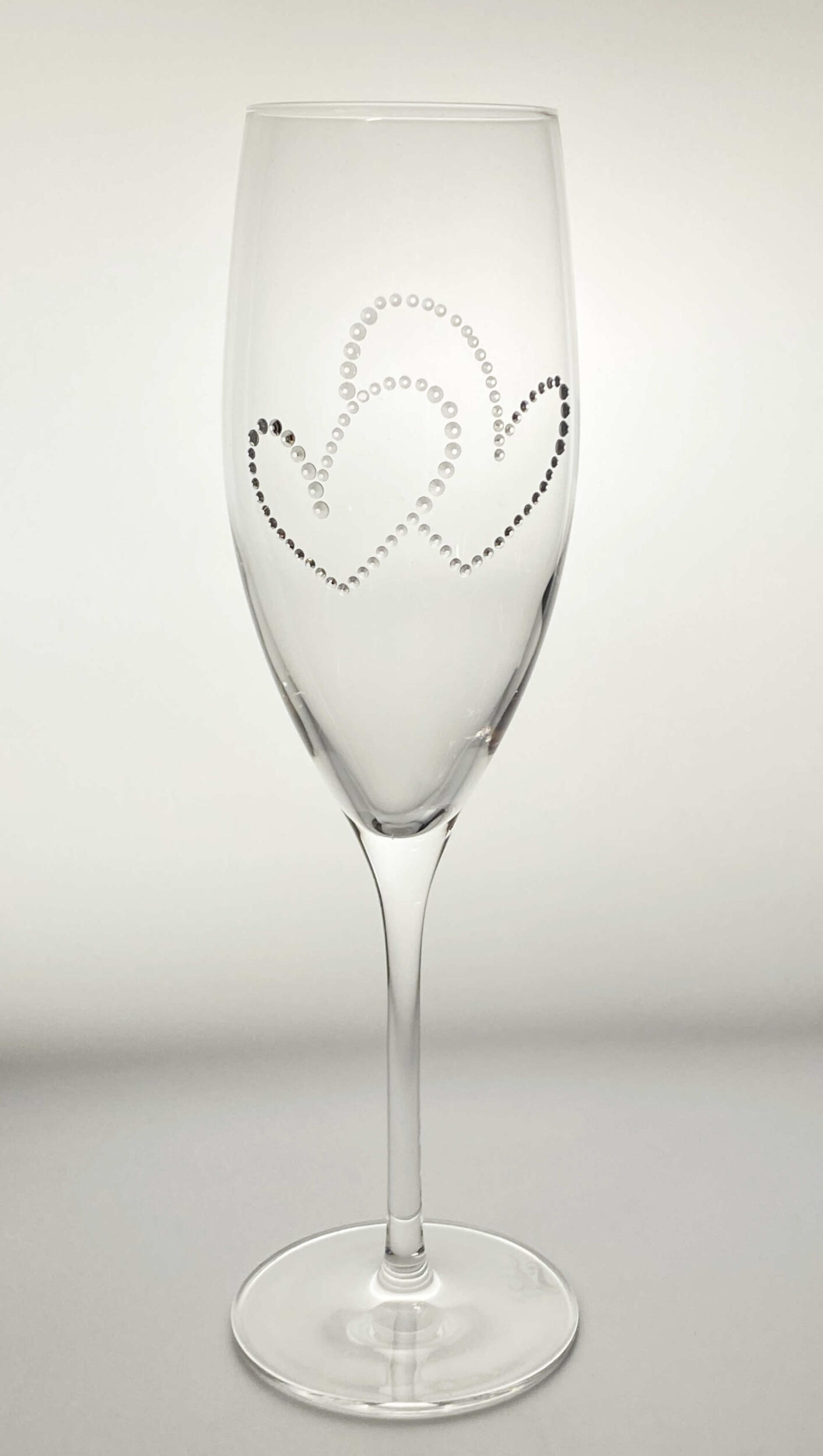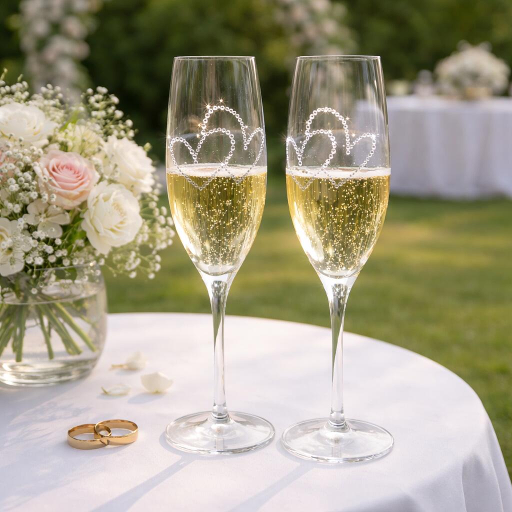 Ein Hauch von Eleganz für besondere Momente! Diese exklusive Champagnerflöte (278 ml) vereint edles Design mit luxuriösem Glanz. Verziert mit Kristallen aus Österreich, wird jedes Glas zum Hingucker. Das Set umfasst zwei hochwertige Gläser, sorgfältig gefertigt in Europa – ideal für Hochzeiten.