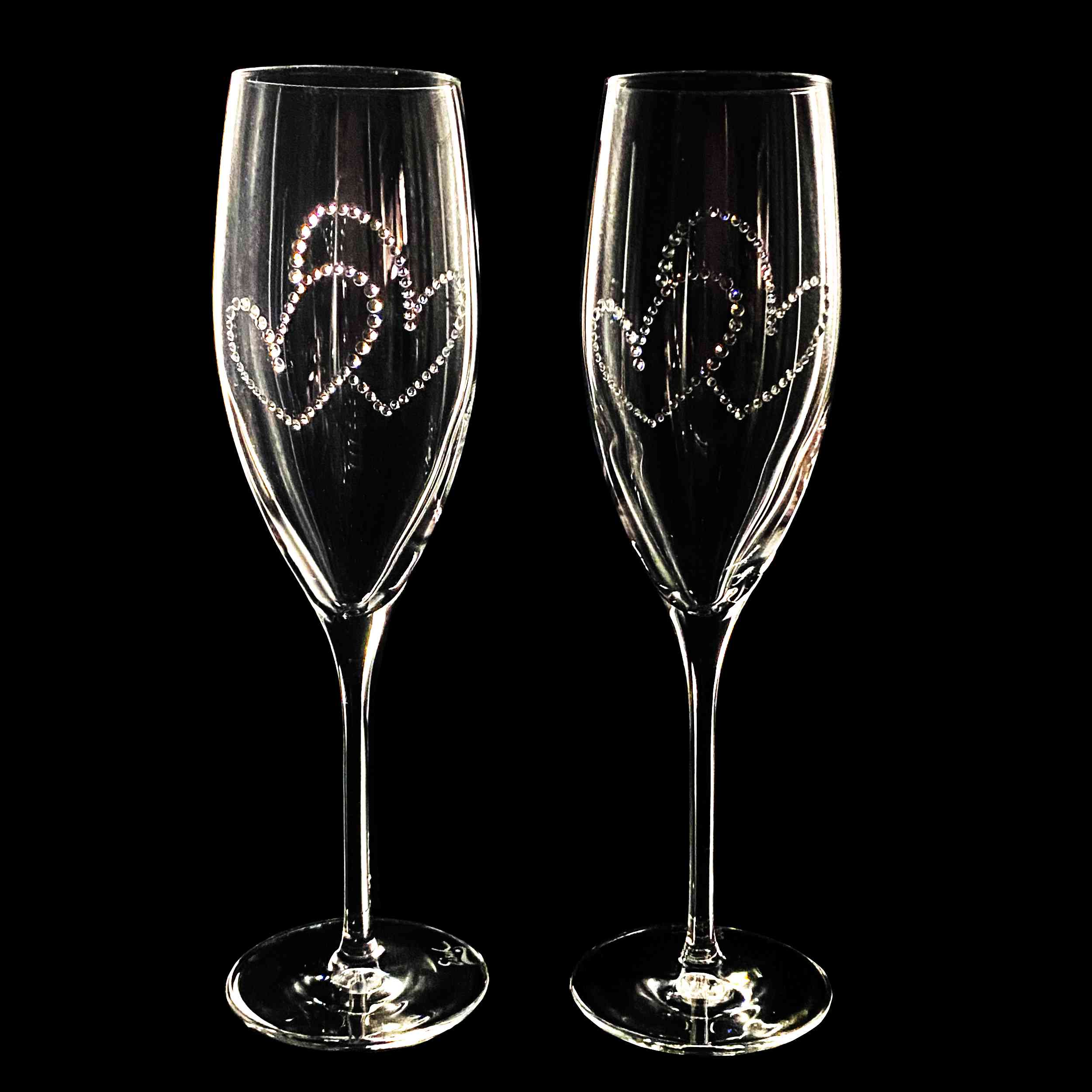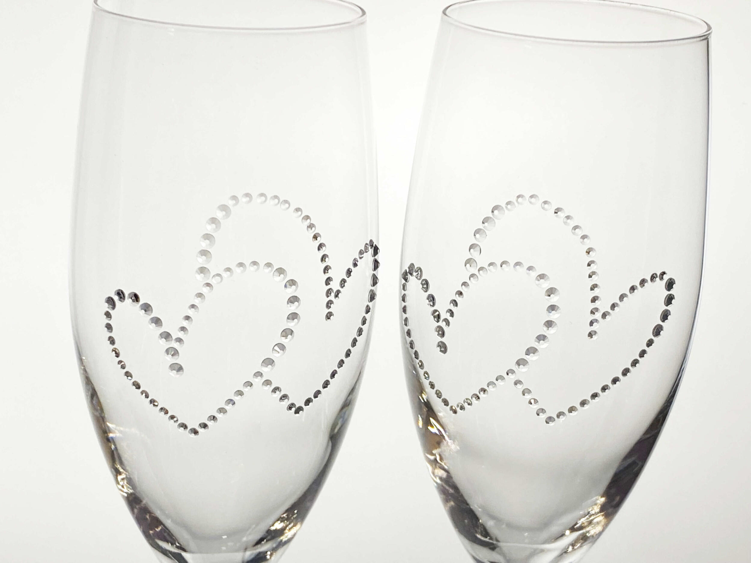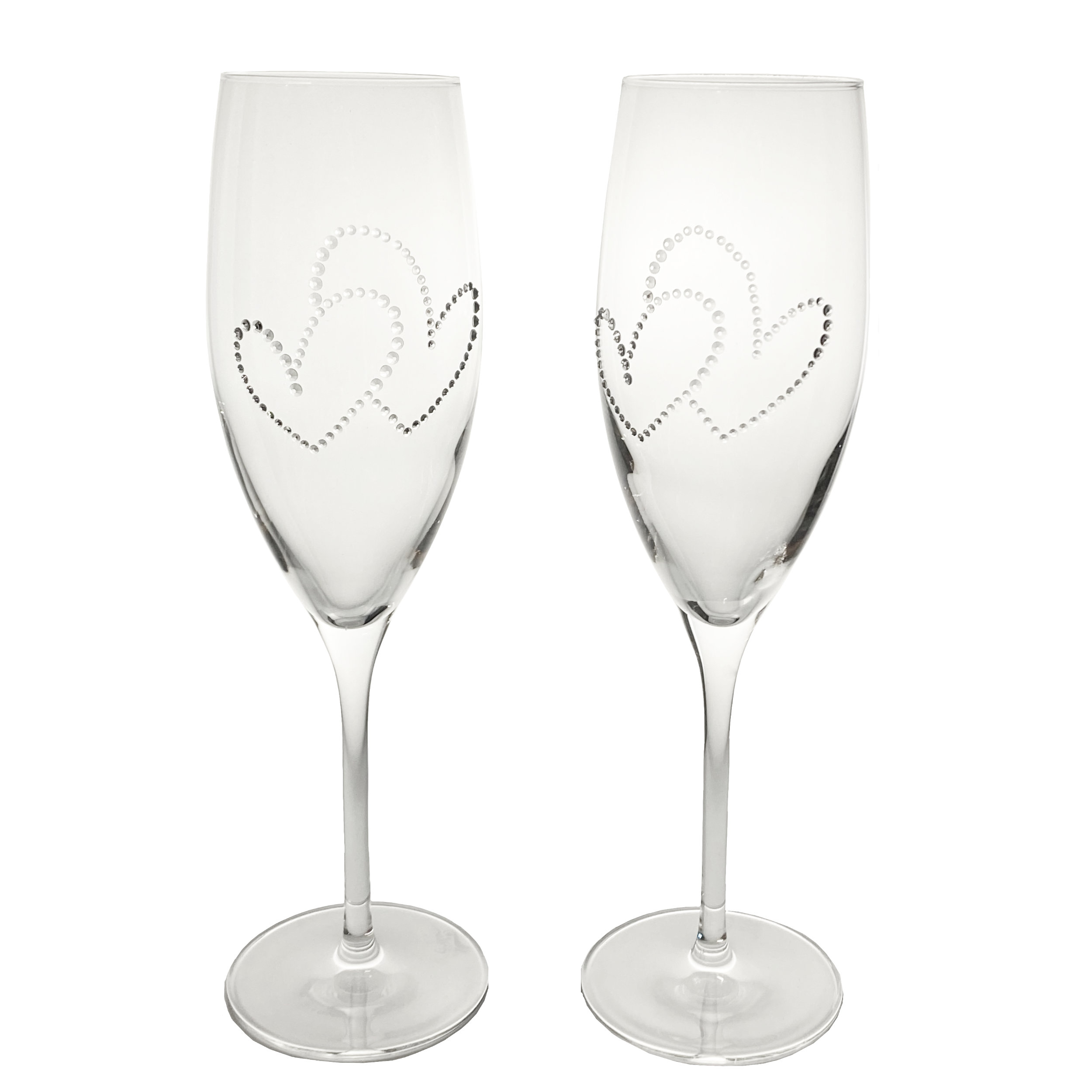 Ein Hauch von Eleganz für besondere Momente! Diese exklusive Champagnerflöte (278 ml) vereint edles Design mit luxuriösem Glanz. Verziert mit Kristallen aus Österreich, wird jedes Glas zum Hingucker. Das Set umfasst zwei hochwertige Gläser, sorgfältig gefertigt in Europa – ideal für Hochzeiten.