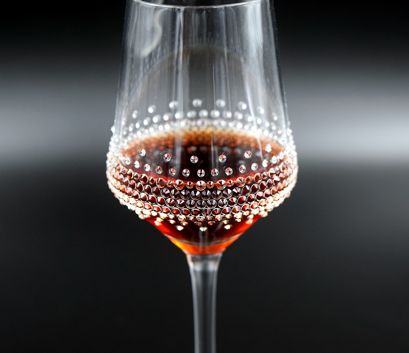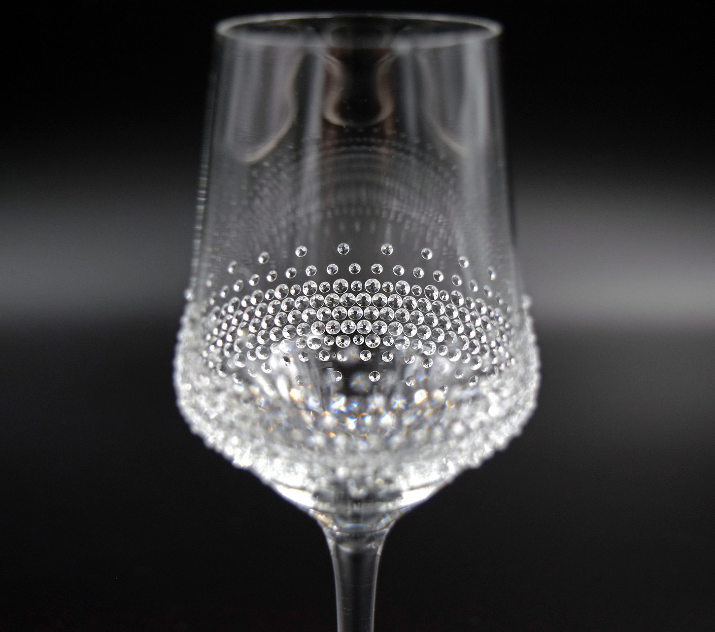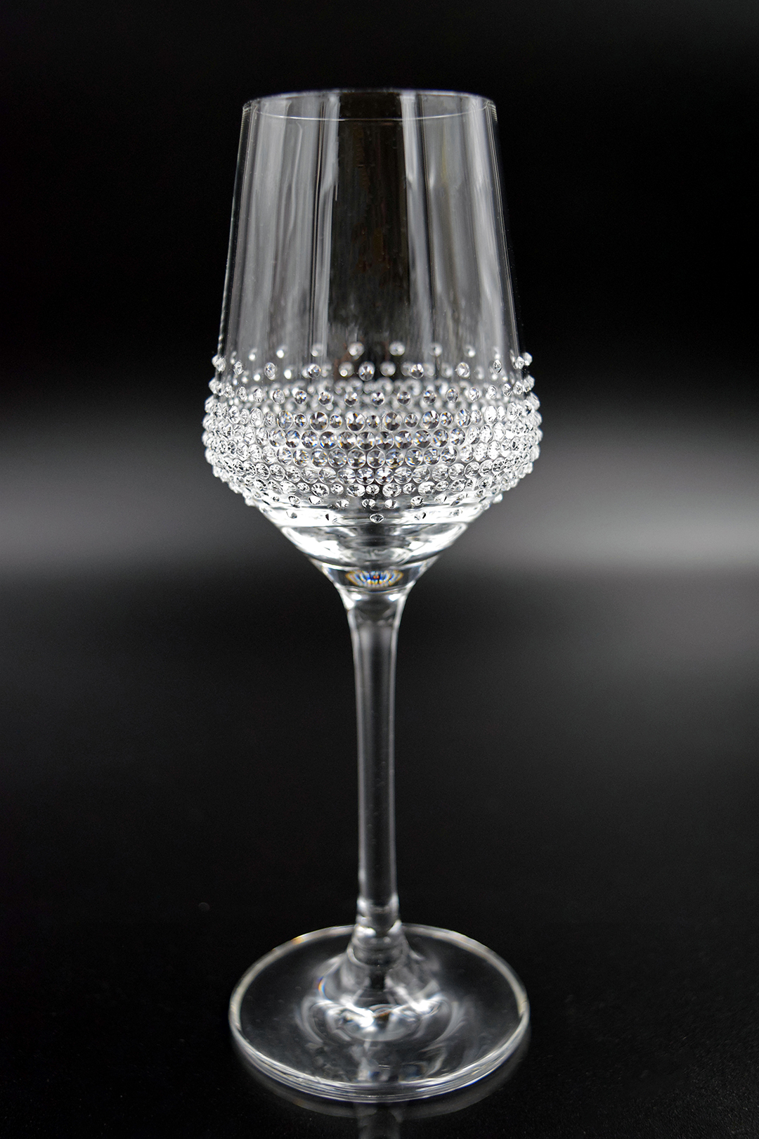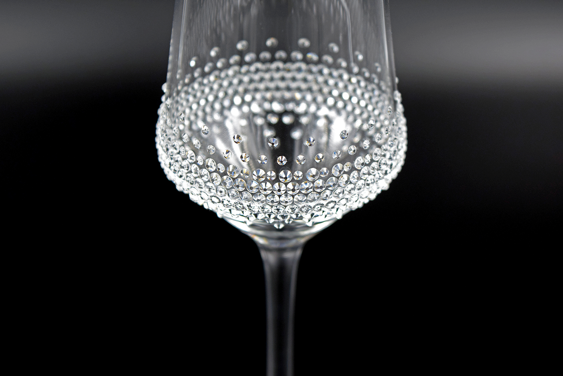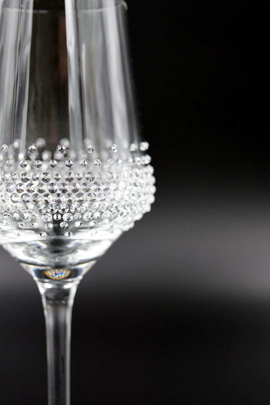Verziert mit 420 Strass Steinen aus Österreich pro Glas.