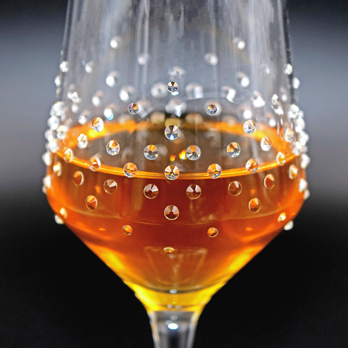 Verziert mit 110 Strass Steinen aus Österreich pro Glas.
