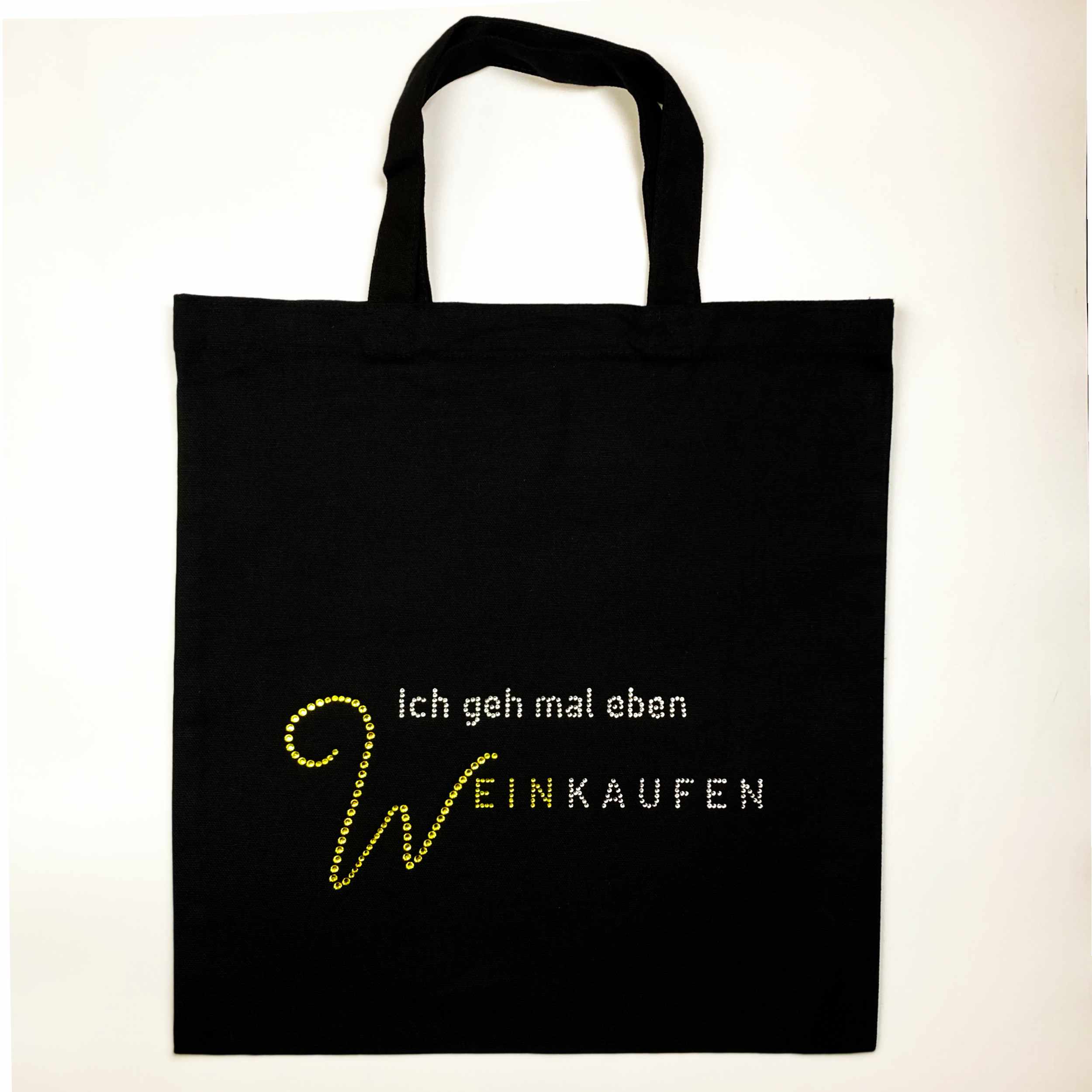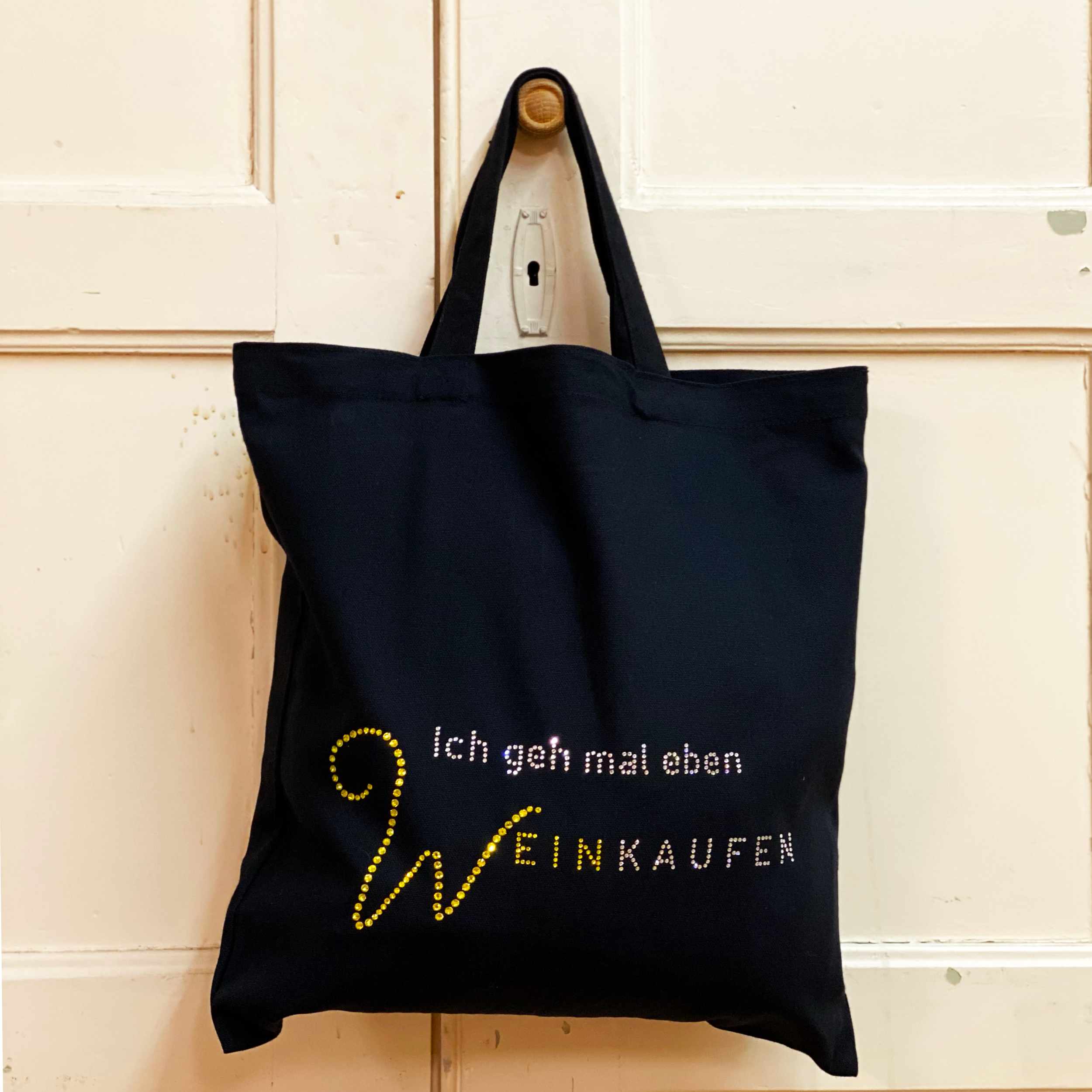 – Hochwertige Qualität aus 100 % reiner Baumwolle – Praktisch und pflegeleicht: Waschbar bei 30°C Schonwäsche – idealerweise auf links gedreht und mit ähnlichen Farben im Wäschesäckchen – Großzügige Größe von ca. 35 x 40 cm – perfekt für den Wochenendeinkauf – Individueller Auftritt mit dem charmanten Aufdruck „Ich geh mal eben Weinkaufen“ – Veredelt mit glänzenden Strasssteinen in crystal und gelb – ein Hingucker beim Tragen