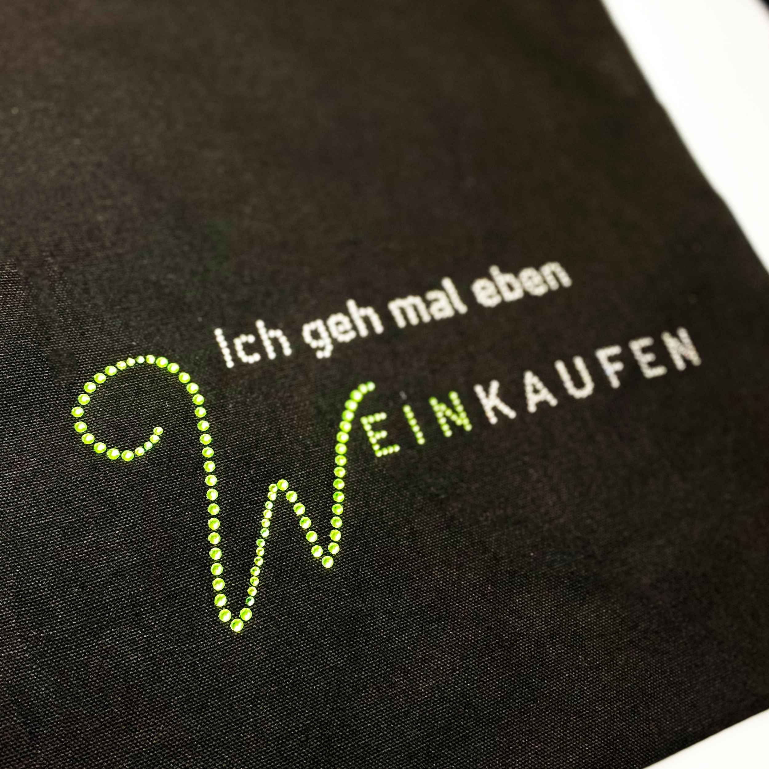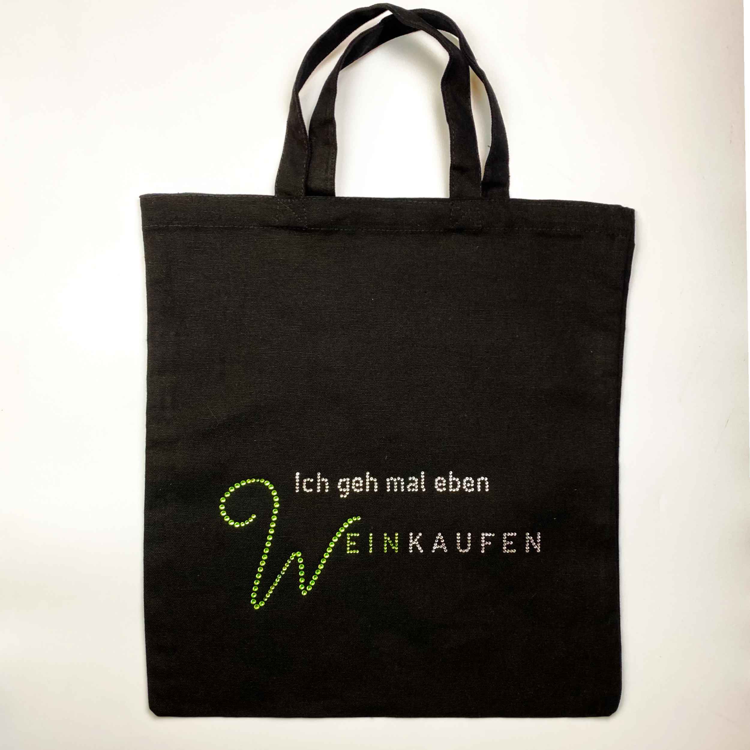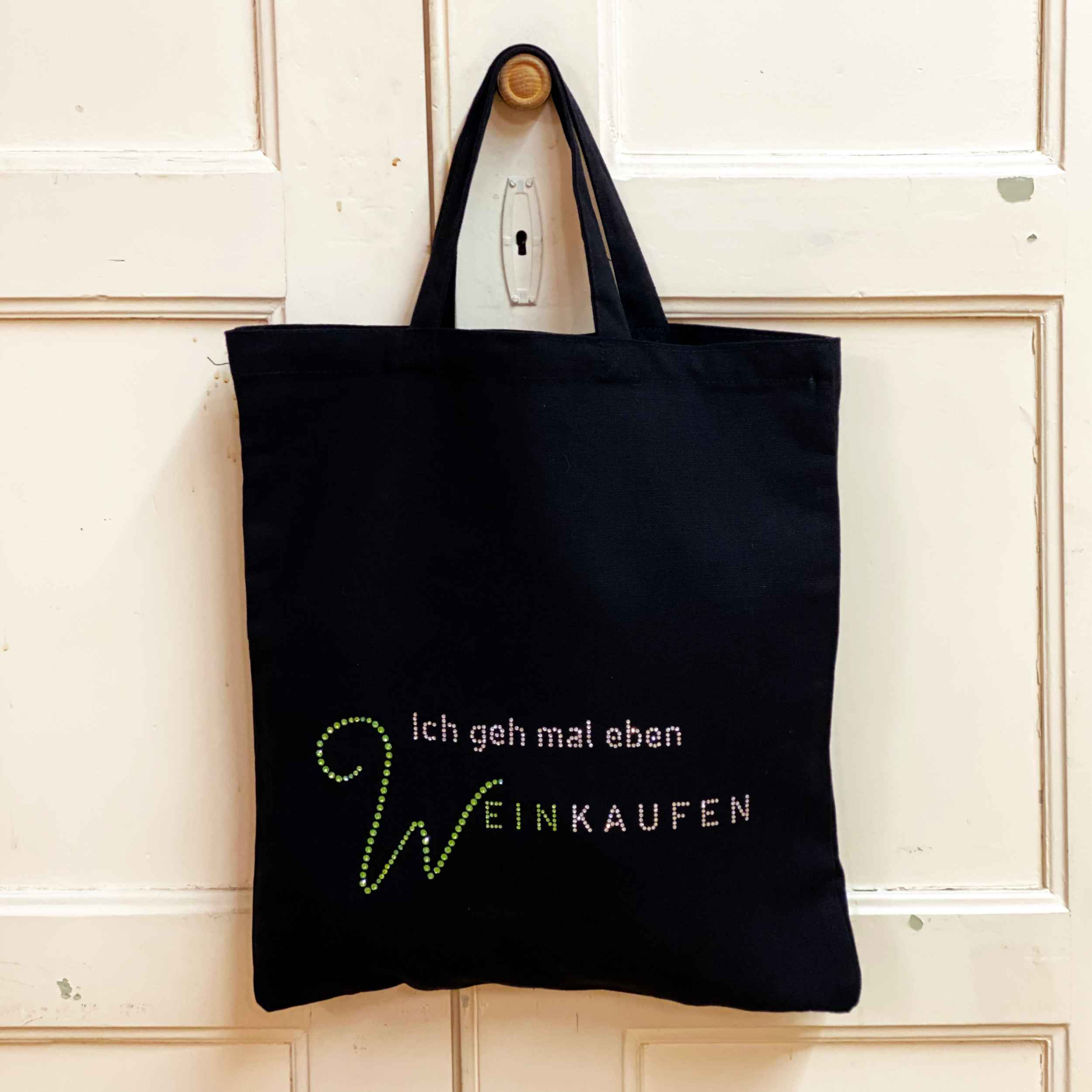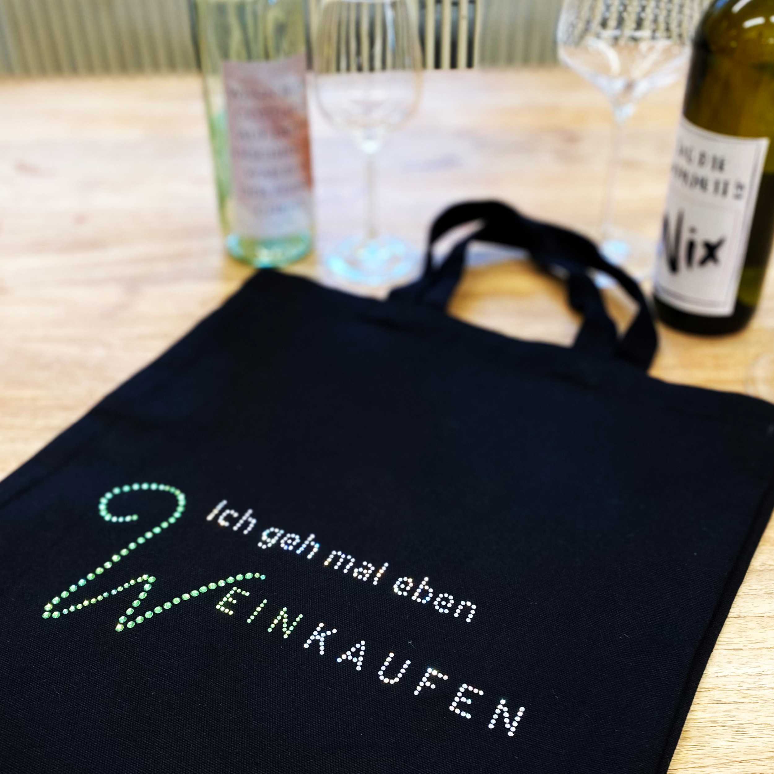 – Individueller Auftritt mit dem charmanten Aufdruck „Ich geh mal eben Weinkaufen“