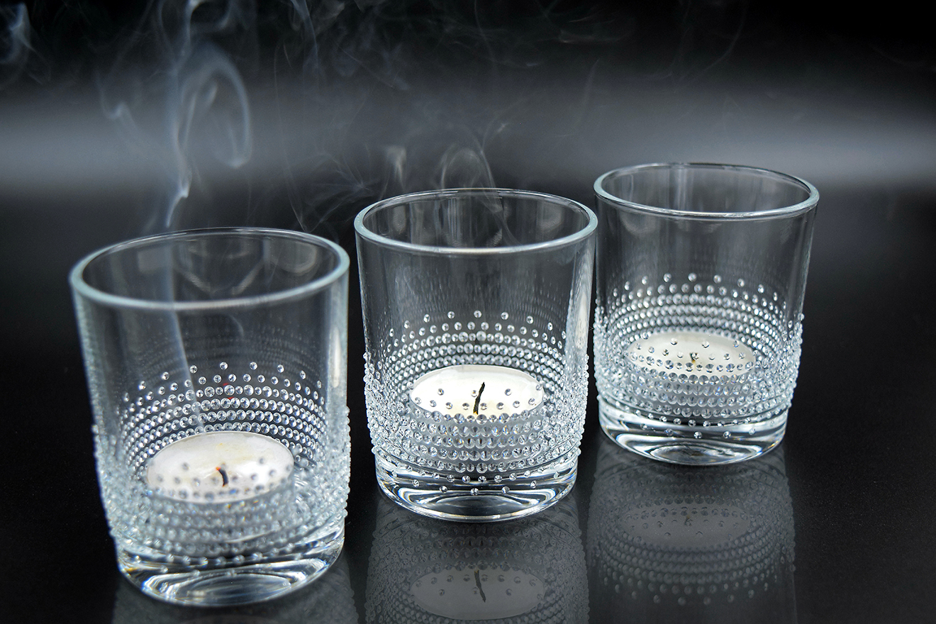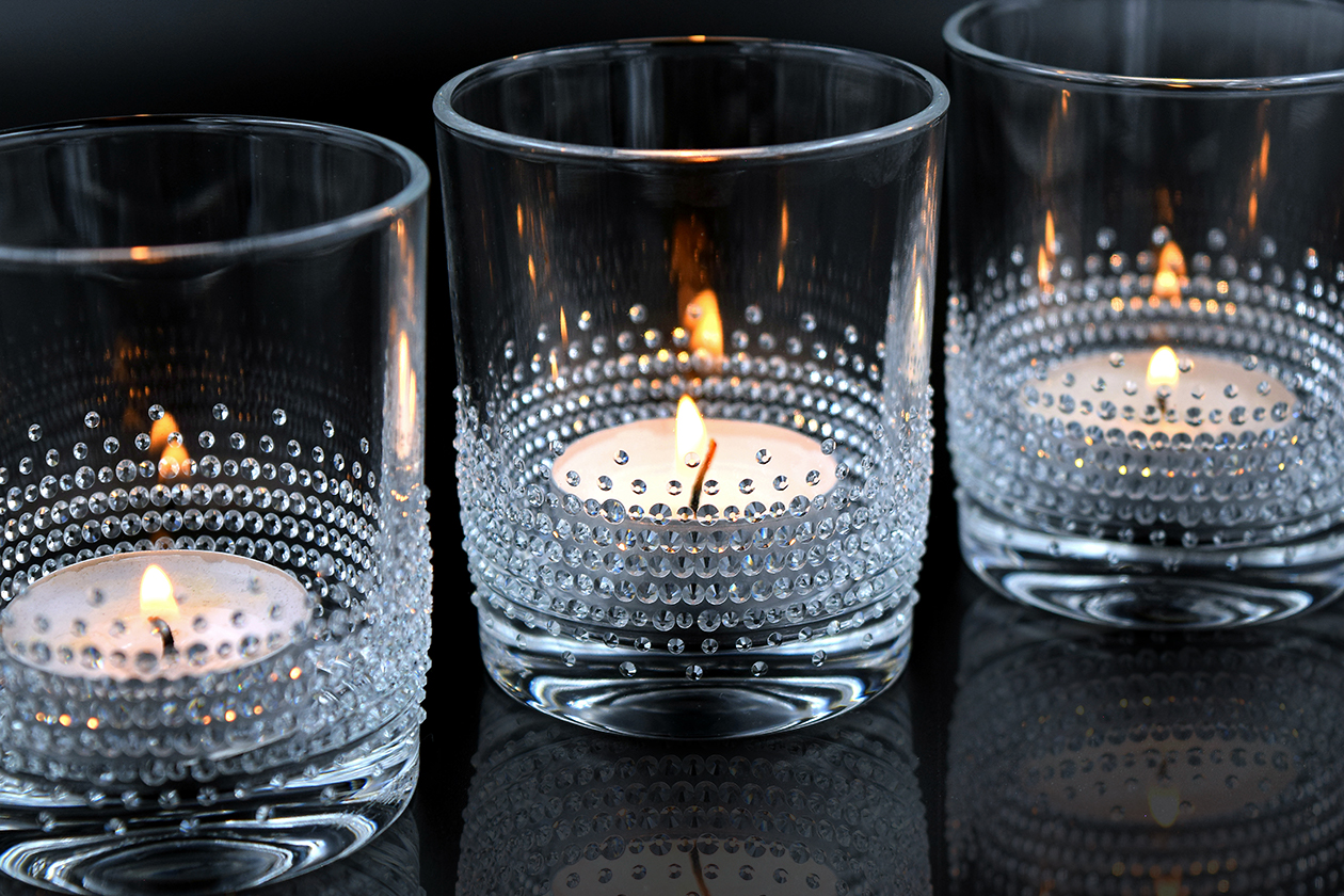 Verziert mit 470 Steinen aus Österreich pro Teelichthalter.