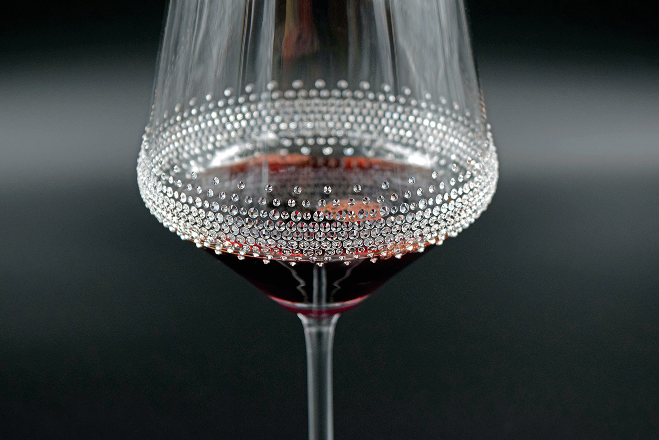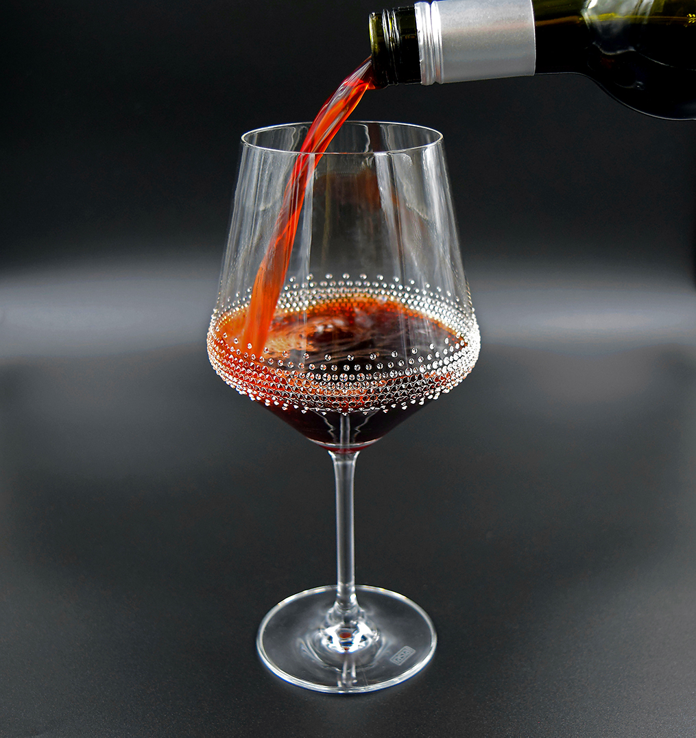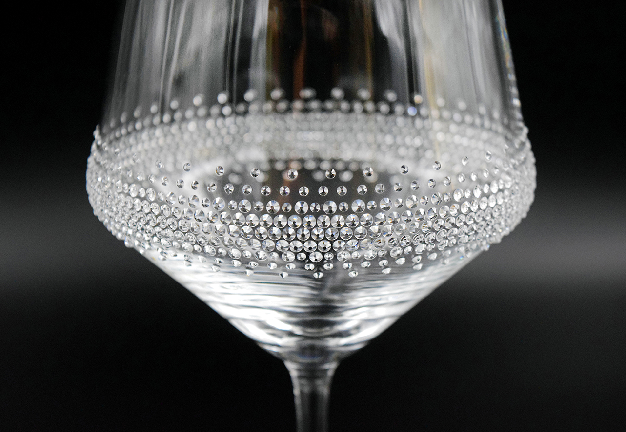 Weinglas (724 ml) Harmony 72, veredelt mit SS6 und SS10 Kristallen der Luxusklasse!Verziert mit 800 Strass Steinen aus Österreich pro Glas.